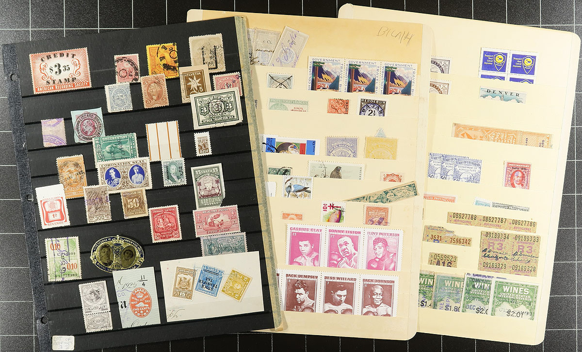 Cinderellas, labels, seals, reproductions, some revenues. All from the deepest section from the "back of the book". As diverse as it is interesting. Small enough to fit under your arm, but big enough to keep you learning for hours. We noted Lundy, various Scottish Isles, local post and express services from Canada, Great Britain and the USA, Russian Duck stamps from the early 1990's, some material from philatelic shows. A fascinating stockbook with an old time holding of "who knows what" and three mint sheet files with US/Canada TB & Easter Seals (one of the files has the panes that are stuck). The only blemish on a great lot! Estimate =