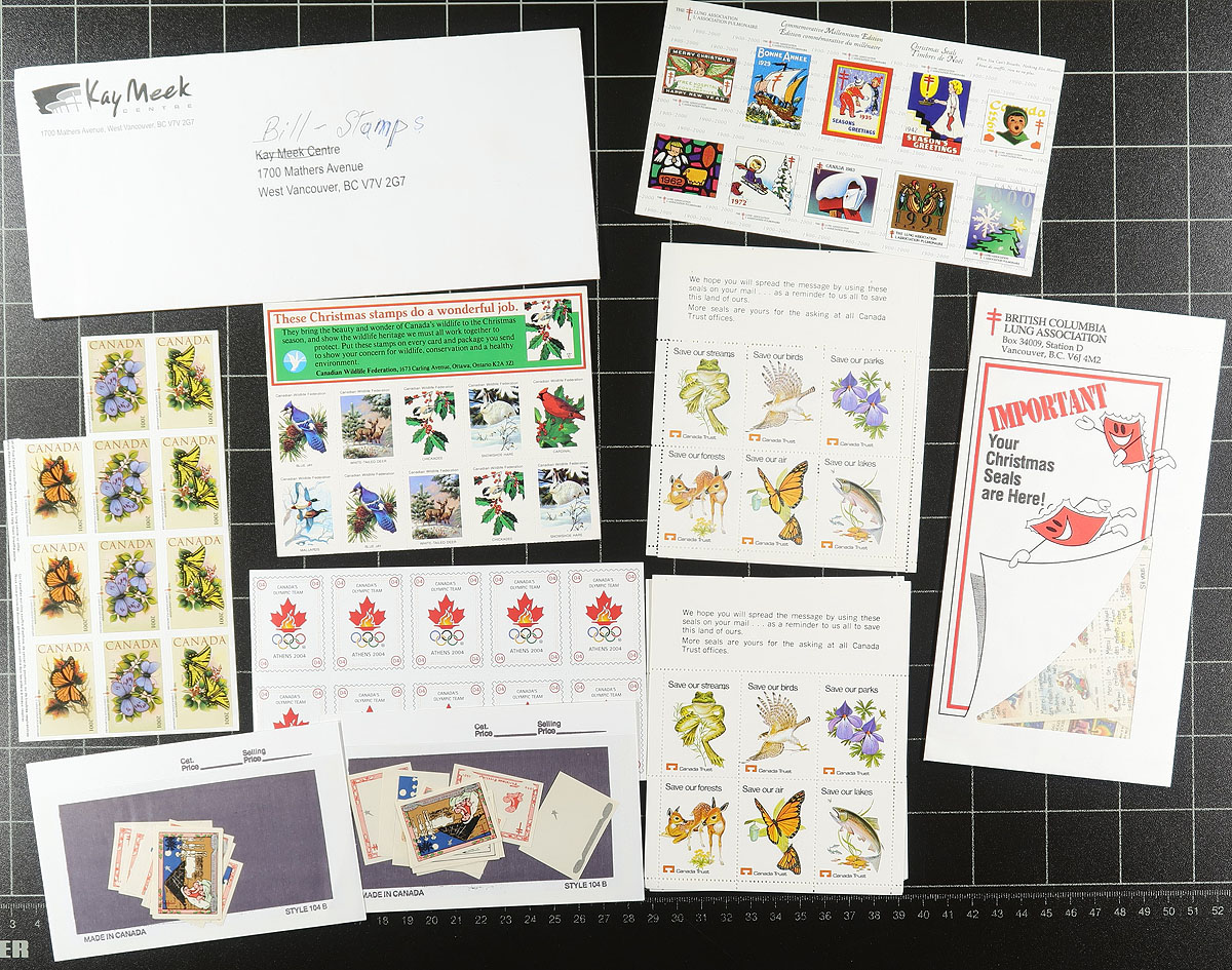 Cinderellas, labels, seals, reproductions, some revenues. All from the deepest section from the "back of the book". As diverse as it is interesting. Small enough to fit under your arm, but big enough to keep you learning for hours. We noted Lundy, various Scottish Isles, local post and express services from Canada, Great Britain and the USA, Russian Duck stamps from the early 1990's, some material from philatelic shows. A fascinating stockbook with an old time holding of "who knows what" and three mint sheet files with US/Canada TB & Easter Seals (one of the files has the panes that are stuck). The only blemish on a great lot! Estimate =