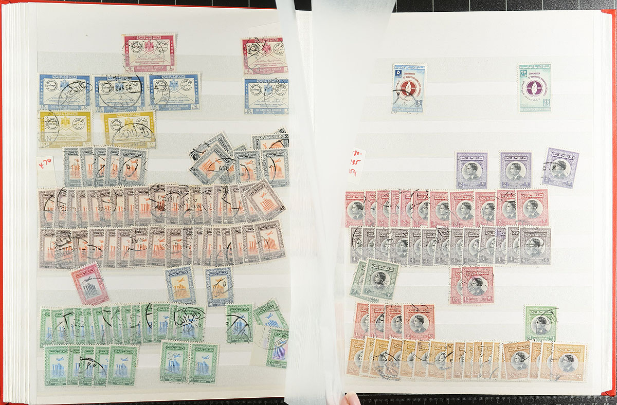 Middle East-ish selection, with a 64-page stockbook of Jordan (and a couple of pages of mint - adding another $200.00 of catalogue value), Iraq imperf airmail souvenir sheet (folded), Yemen 1983 Balloon flight, Aden (Qu’aiti & Kathiri States), Umm Al Qiwan, Fujiera, a nice set of 1949 Iran (and a partial 1960's set). Tons of catalogue value here. Not often seen. Estimate =
