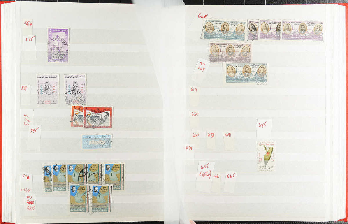 Middle East-ish selection, with a 64-page stockbook of Jordan (and a couple of pages of mint - adding another $200.00 of catalogue value), Iraq imperf airmail souvenir sheet (folded), Yemen 1983 Balloon flight, Aden (Qu’aiti & Kathiri States), Umm Al Qiwan, Fujiera, a nice set of 1949 Iran (and a partial 1960's set). Tons of catalogue value here. Not often seen. Estimate =