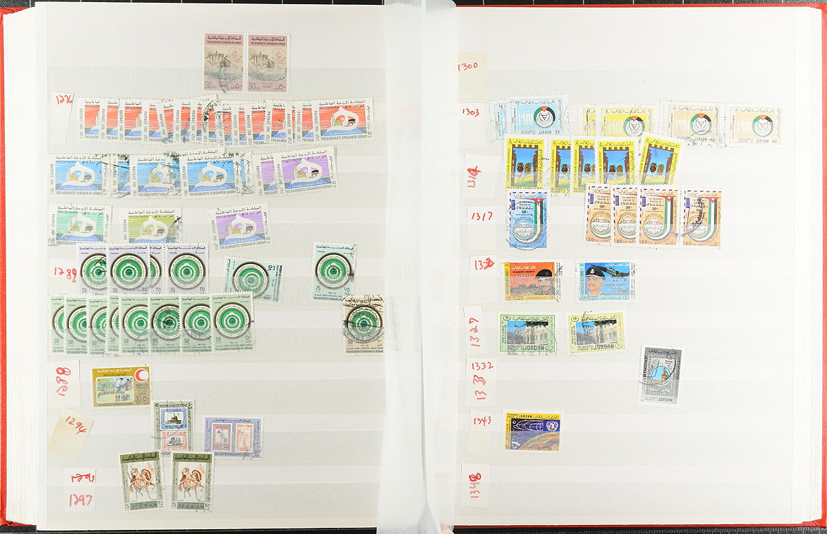 Middle East-ish selection, with a 64-page stockbook of Jordan (and a couple of pages of mint - adding another $200.00 of catalogue value), Iraq imperf airmail souvenir sheet (folded), Yemen 1983 Balloon flight, Aden (Qu’aiti & Kathiri States), Umm Al Qiwan, Fujiera, a nice set of 1949 Iran (and a partial 1960's set). Tons of catalogue value here. Not often seen. Estimate =