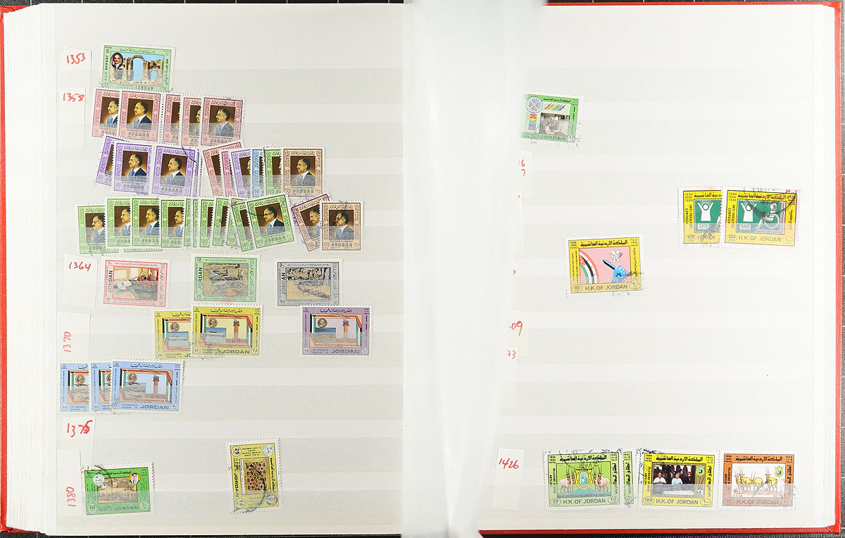 Middle East-ish selection, with a 64-page stockbook of Jordan (and a couple of pages of mint - adding another $200.00 of catalogue value), Iraq imperf airmail souvenir sheet (folded), Yemen 1983 Balloon flight, Aden (Qu’aiti & Kathiri States), Umm Al Qiwan, Fujiera, a nice set of 1949 Iran (and a partial 1960's set). Tons of catalogue value here. Not often seen. Estimate =