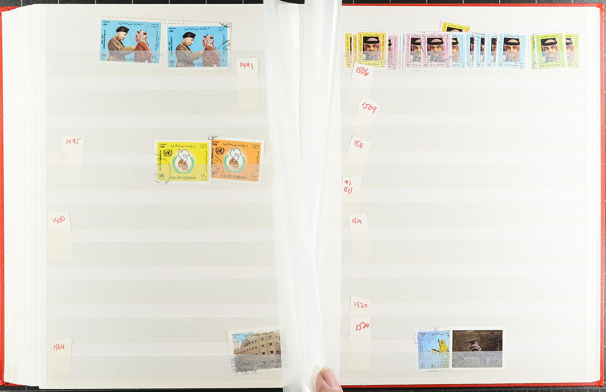 Middle East-ish selection, with a 64-page stockbook of Jordan (and a couple of pages of mint - adding another $200.00 of catalogue value), Iraq imperf airmail souvenir sheet (folded), Yemen 1983 Balloon flight, Aden (Qu’aiti & Kathiri States), Umm Al Qiwan, Fujiera, a nice set of 1949 Iran (and a partial 1960's set). Tons of catalogue value here. Not often seen. Estimate =