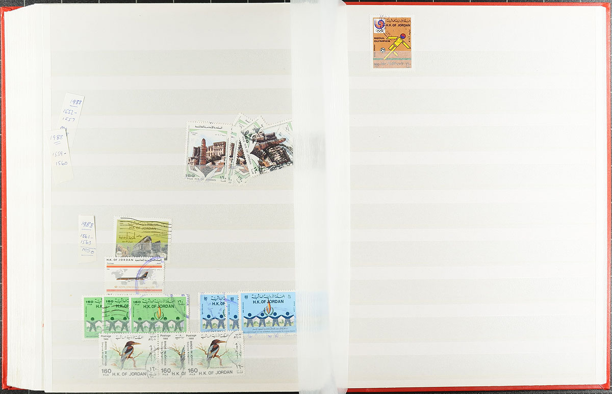 Middle East-ish selection, with a 64-page stockbook of Jordan (and a couple of pages of mint - adding another $200.00 of catalogue value), Iraq imperf airmail souvenir sheet (folded), Yemen 1983 Balloon flight, Aden (Qu’aiti & Kathiri States), Umm Al Qiwan, Fujiera, a nice set of 1949 Iran (and a partial 1960's set). Tons of catalogue value here. Not often seen. Estimate =