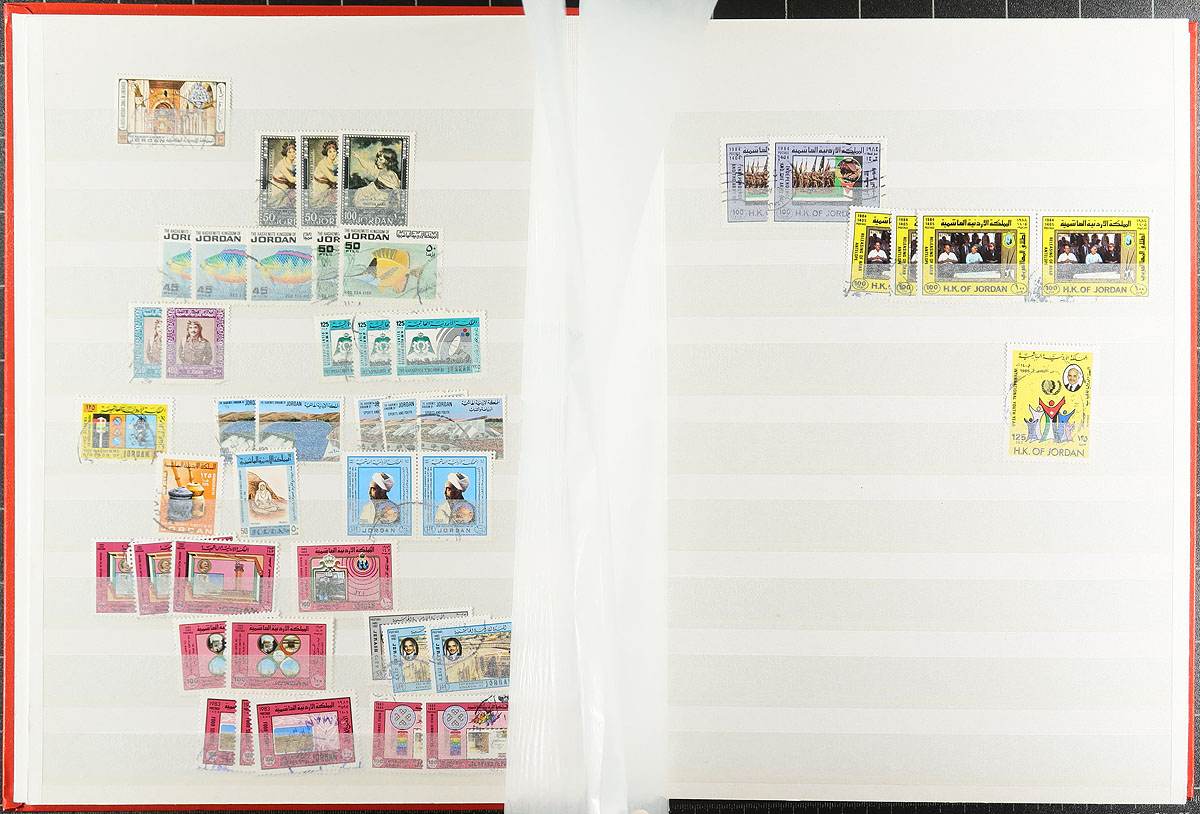 Middle East-ish selection, with a 64-page stockbook of Jordan (and a couple of pages of mint - adding another $200.00 of catalogue value), Iraq imperf airmail souvenir sheet (folded), Yemen 1983 Balloon flight, Aden (Qu’aiti & Kathiri States), Umm Al Qiwan, Fujiera, a nice set of 1949 Iran (and a partial 1960's set). Tons of catalogue value here. Not often seen. Estimate =