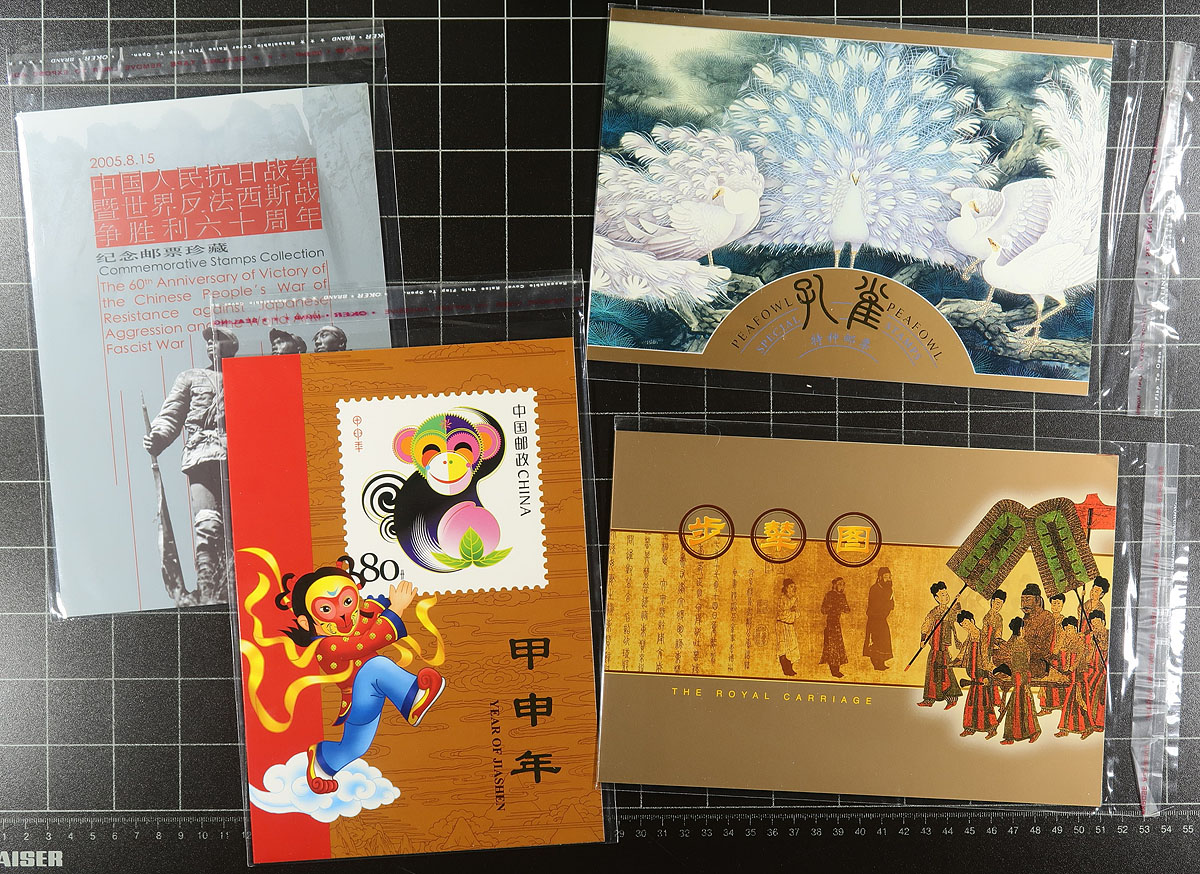 Bundle of assorted Asia, with a good handful of PR China 1996-2006 presentation folders (#3526-3529 sheetlet of 8) with a Scott catalogue value of US$340.00 and CTO blocks of #930-931 (cat US$140.00).There is a card of early Thailand, some Japan, North Vietnam, Indo-China assortment, a page of RO China and a mint sheet folder with some used Korean sheets (plus a few from non-Asian countries). Substantial catalogue value here. Estimate =