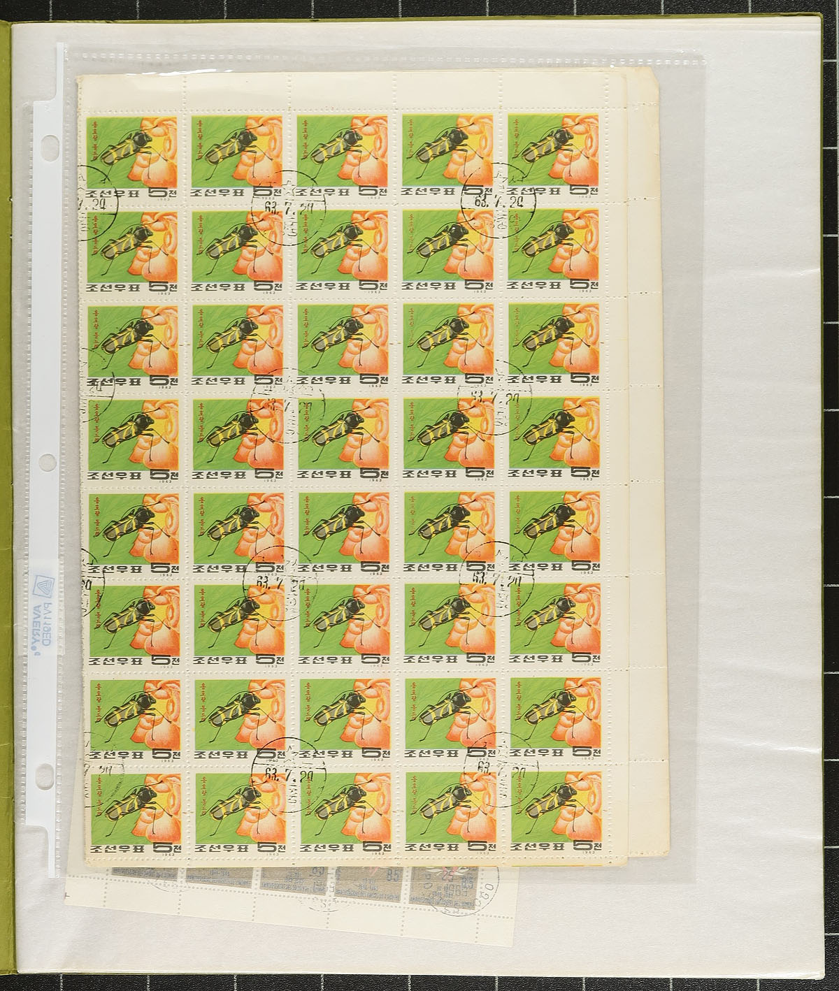 Bundle of assorted Asia, with a good handful of PR China 1996-2006 presentation folders (#3526-3529 sheetlet of 8) with a Scott catalogue value of US$340.00 and CTO blocks of #930-931 (cat US$140.00).There is a card of early Thailand, some Japan, North Vietnam, Indo-China assortment, a page of RO China and a mint sheet folder with some used Korean sheets (plus a few from non-Asian countries). Substantial catalogue value here. Estimate =