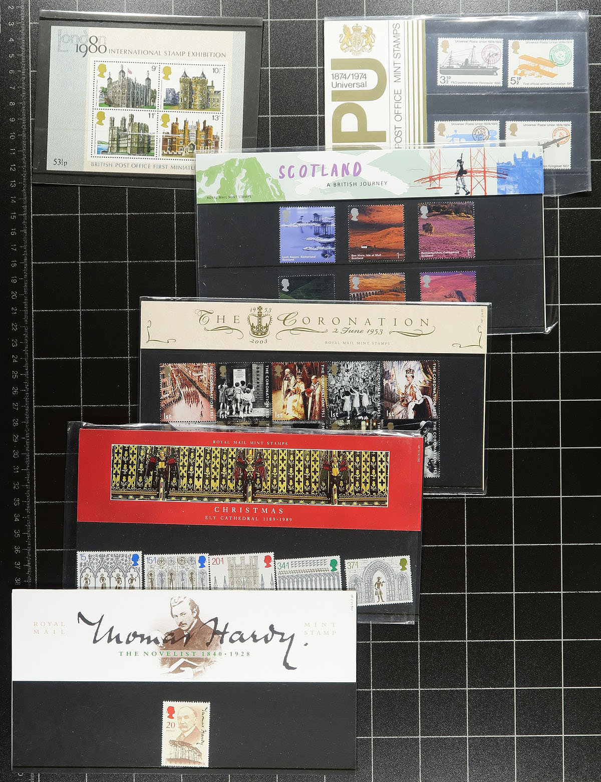 GPO Presentation packs from the mid-1960's to 2006, plus four year-packs. The early packs such as the Parliament, Battle of Britain, PO Tower, etc. have substantial catalogue value in Stanley Gibbons (and have the usual age-induced warping of the shrink-wrap). There is a smattering of various issues over the years (a few don’t have their external sleeves), and some better Royal anniversary issues of the new Millennium. The year packs are for 1986, 1995, 1995 and 1998 (these are better than the year sets, as they have all the commemoratives issued in the year). Great for building a collection or fill in some spots. Estimate =