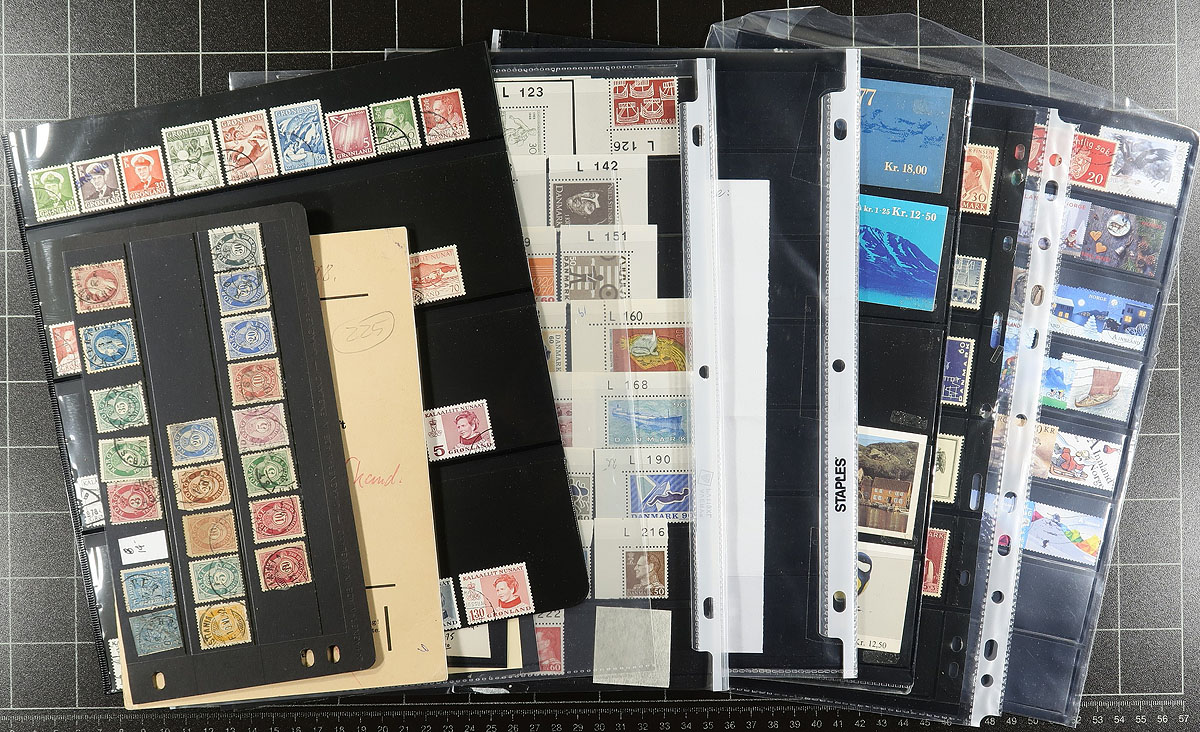 Scandinavian Smorgasbord #1: The balance of an estate with a wide assortment of material. Norway has some early used #3, #4 (and very modern) issues, 1970's-1980's booklets. Denmark has nice pages of 1960's-1970's issues with corner singles, with margin numbers and a lightly hinged copy of #139 and a century’s worth of mint from 1884 (almost 100 stamps, almost 100 years). Greenland booklets from ca1990 are complemented with a couple of pages of used sets and singles. Finally, there is an old circuit book (price in DM) mostly Denmark, Sweden and Denmark. Lots of catalogue value here. Estimate =