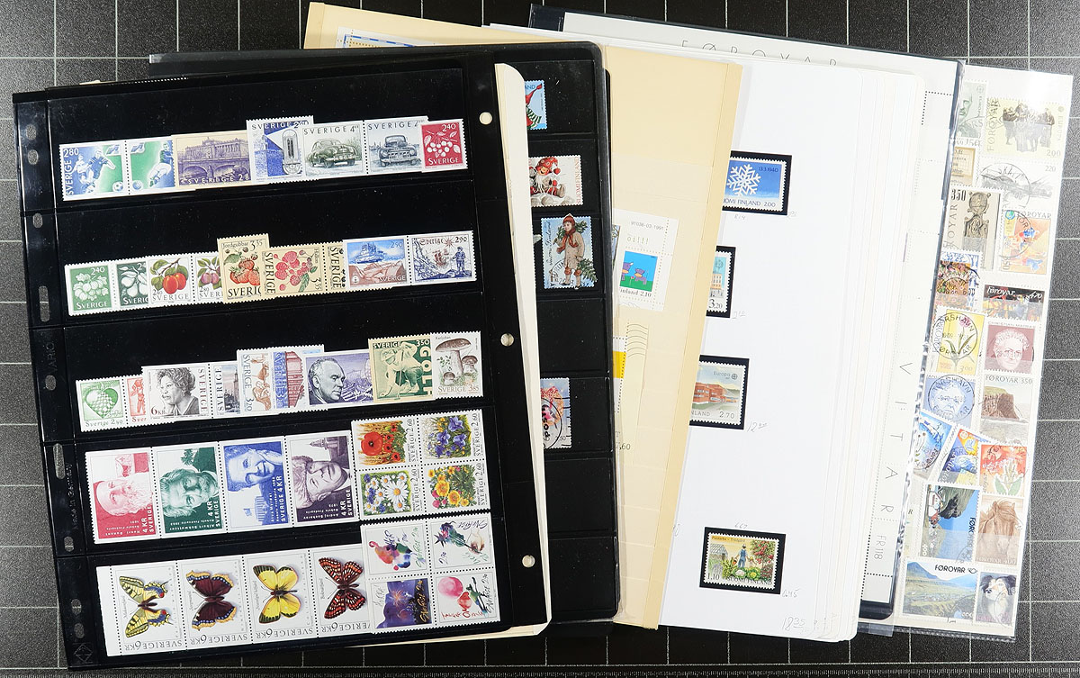 Scandinavian Smorgasbord #2: The balance of an estate with a wide assortment of material with some mint 1990's sets and booklet panes from Sweden. Finland has some mint stamps and souvenir sheets from the same era and some more recent used Christmas issues. Aland is represented by 9 mint sets of "Frama"-style Vending Machine stamps. A strong Faroe Islands showing includes sets, booklets and three panes of the 1982 "Lighthouse" issue. Catalogue value adds up quickly here. Estimate =
