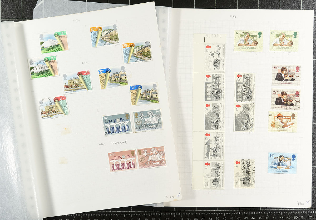 Hingeless Lindner album duo. Includes the classic "1840-1951" edition (to the end of King George VI), plus a second volume of 1981-1985 in near-new condition. Each in a dark blue 18-ring binder with matching slip case (one could use some minor regluing. The first volume and the second binder with slip cases retail at over €200.00. BUT there are no stamps inside, so the consignor is sweetening the deal by adding a couple of thousand dollars (catalogue value) of mostly used stamps suitable for both albums. Estimate =