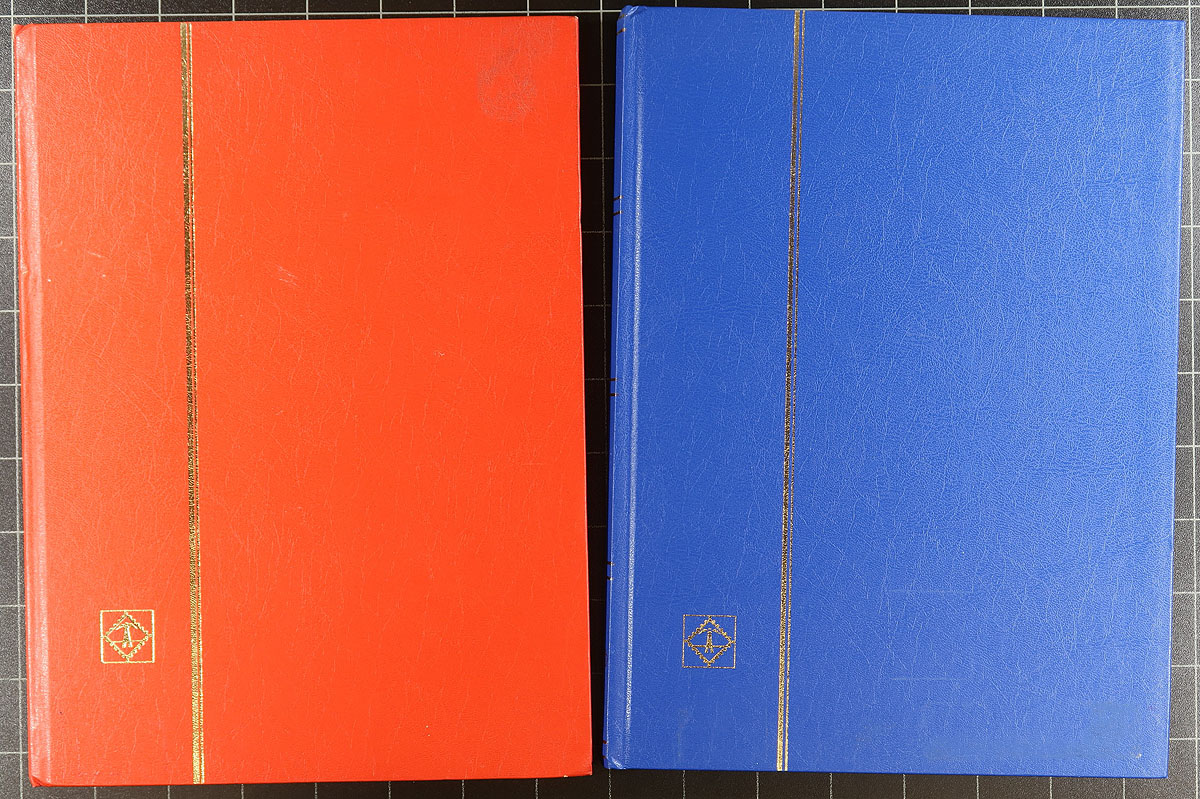 Bankers box of supplies, with bonus stamps. Over 150 used manila stock pages, most occupied with Sweden, Canada or United States stamps (thousands in total), the pages widely range in condition. There is four stockbooks of various sizes and manufacture, and a 3-ring binder with black stock pages. Finally there is a large "Lighthouse" mount cutter, three open packs of original "Dennison" hinges (probably makes just over 1,000 hinges in total) and a couple of new tongs. This should help you get through the winter. Estimate =