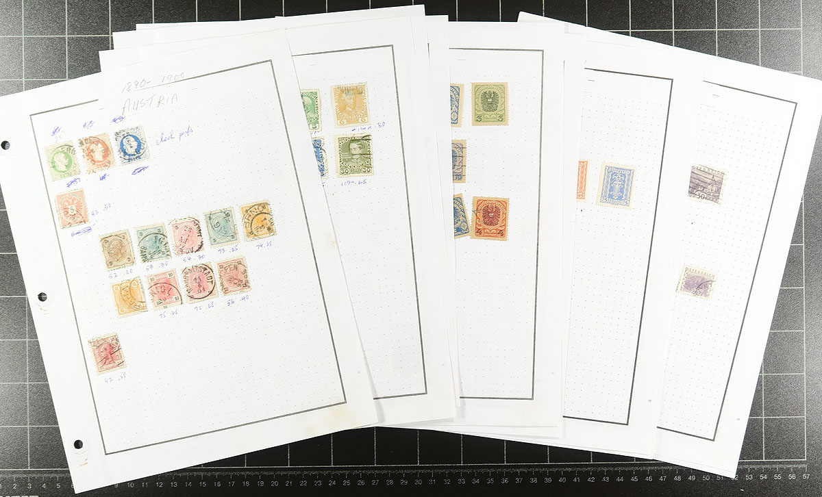 Big bundle of Austria with mostly mint from the post-war era up to 2013. Noted #514-515, #963A and back of the book semi-postals (#B260-B263) and postage dues. Some are mounted in a lovely 1978-89 Lindner hingeless album in a near-new red coloured 18-ring binder (filled with mint stamps). There are more stamps on stock cards and "102" cards, and a small, mounted collection of used issues back to the 19th century. Finishes with a group of 150 different "ETB" First Day panels (a few with minor edge toning, for the record). Amongst the mint, the owners’ Scott catalogue value is over US$1000.00. Estimate =