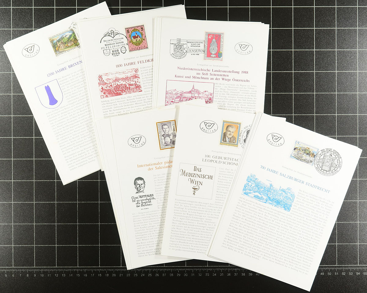Big bundle of Austria with mostly mint from the post-war era up to 2013. Noted #514-515, #963A and back of the book semi-postals (#B260-B263) and postage dues. Some are mounted in a lovely 1978-89 Lindner hingeless album in a near-new red coloured 18-ring binder (filled with mint stamps). There are more stamps on stock cards and "102" cards, and a small, mounted collection of used issues back to the 19th century. Finishes with a group of 150 different "ETB" First Day panels (a few with minor edge toning, for the record). Amongst the mint, the owners’ Scott catalogue value is over US$1000.00. Estimate =