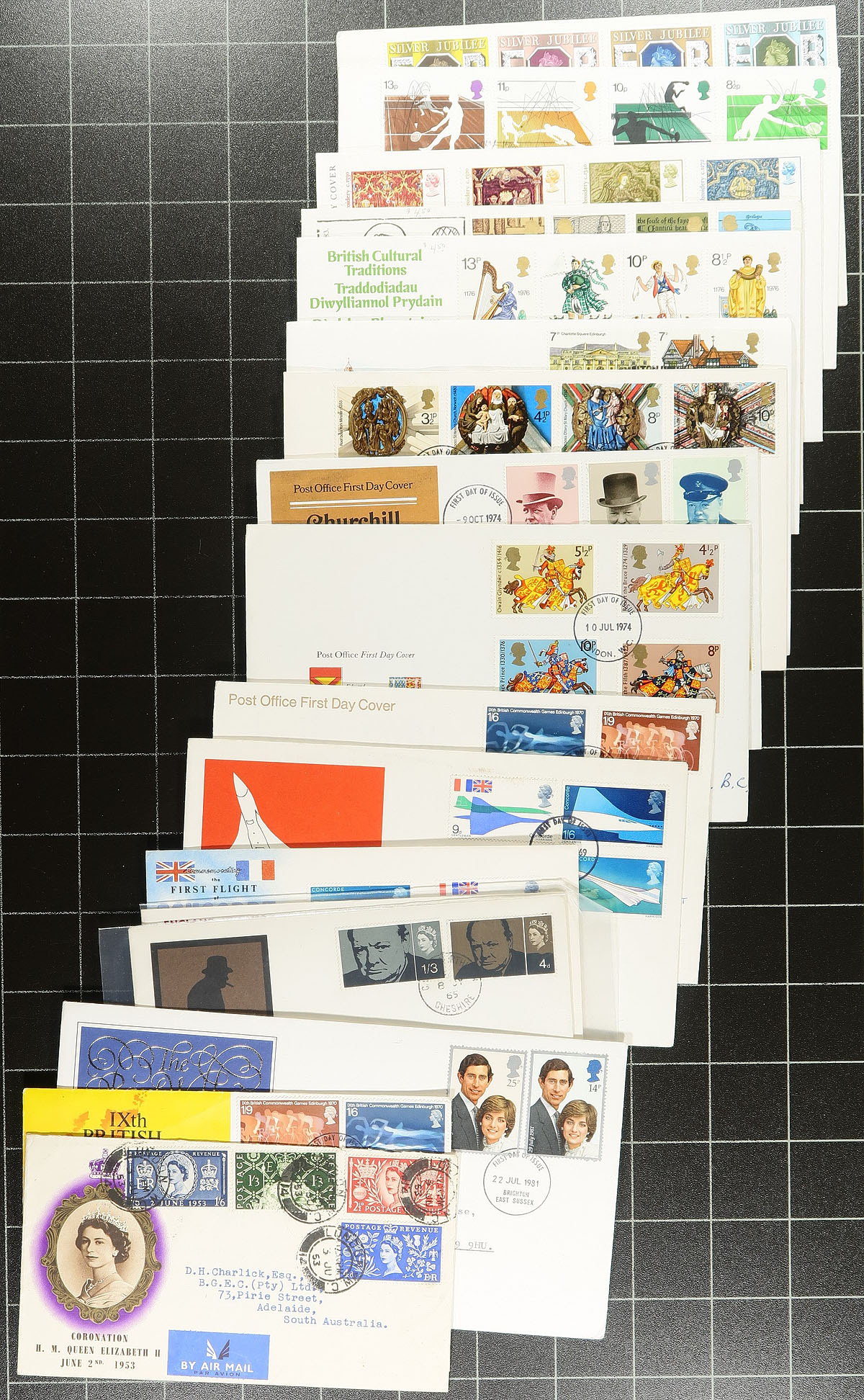 Cacheted First Day Cover accumulation taking up half a banker’s box. Most are 1960's through to the 1990's, but with a bundle of 2007 issues (SG catalogue £105!), but we did see a couple of 1953 Coronation and a 2016 Birthday FDC. A wide range of issues, including a number of private cachets from the 1960's that have lots of potential, and then a hit or miss offering of British Post Office cachets, plus some PHQ cards cancelled as "maximum cards" and a bit of Jersey & Guernsey issues. Most addressed, a few of the early issues have their original contents. We didn’t notice much duplication. A few are faulty, but generally a very clean lot. Estimate =