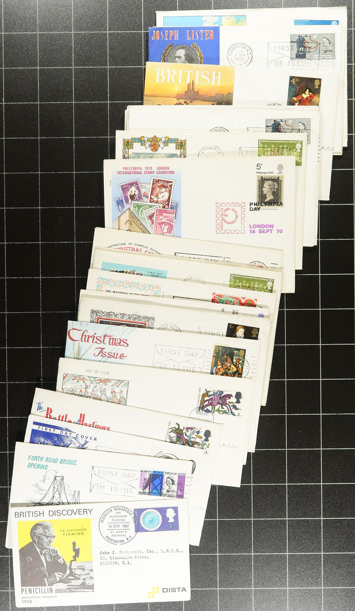 Cacheted First Day Cover accumulation taking up half a banker’s box. Most are 1960's through to the 1990's, but with a bundle of 2007 issues (SG catalogue £105!), but we did see a couple of 1953 Coronation and a 2016 Birthday FDC. A wide range of issues, including a number of private cachets from the 1960's that have lots of potential, and then a hit or miss offering of British Post Office cachets, plus some PHQ cards cancelled as "maximum cards" and a bit of Jersey & Guernsey issues. Most addressed, a few of the early issues have their original contents. We didn’t notice much duplication. A few are faulty, but generally a very clean lot. Estimate =