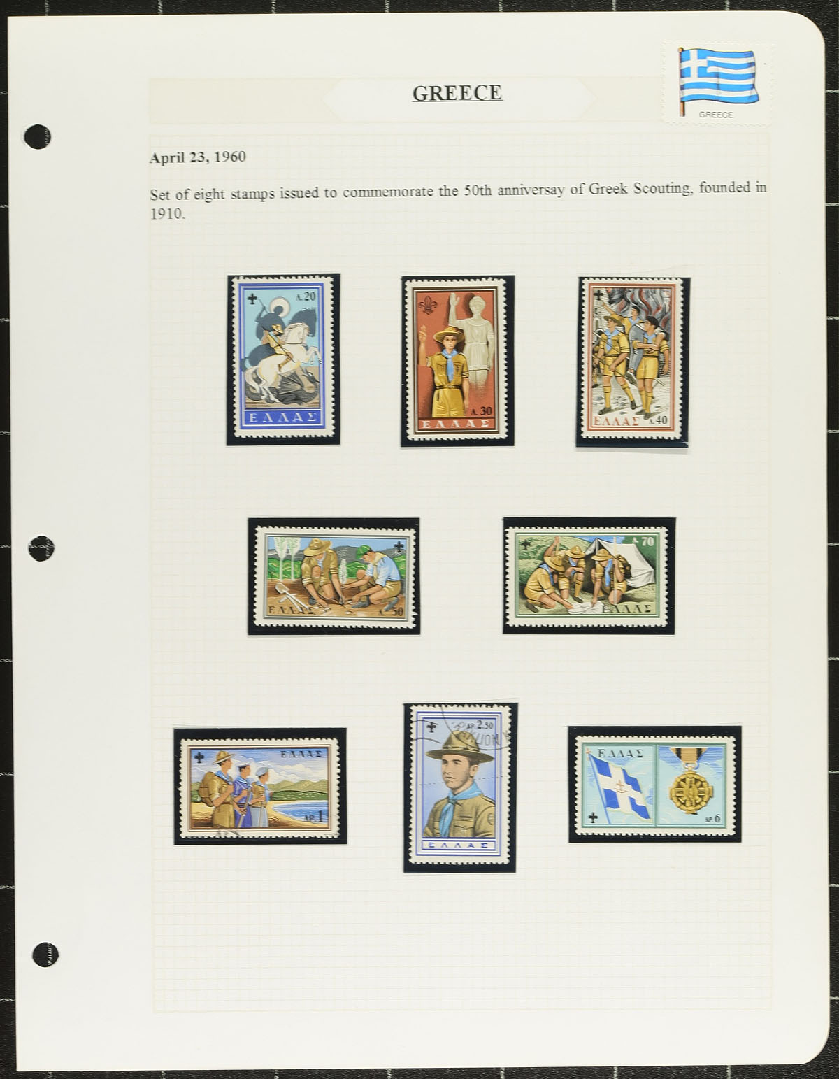 Extensive Scout thematic collection in two binders, with a healthy mix of stamps, souvenir sheets, covers (both philatelic and commercial), cancels and a bit of ephemera (including Cinderellas). The stamps are in black mounts and neatly typed up, including write-ups for the relatively few items that the collector doesn’t have. The pile of pages alone is 10cm/4" deep. Many hundreds of different stamps, and dozens of covers. An enormous effort to build this. Estimate =