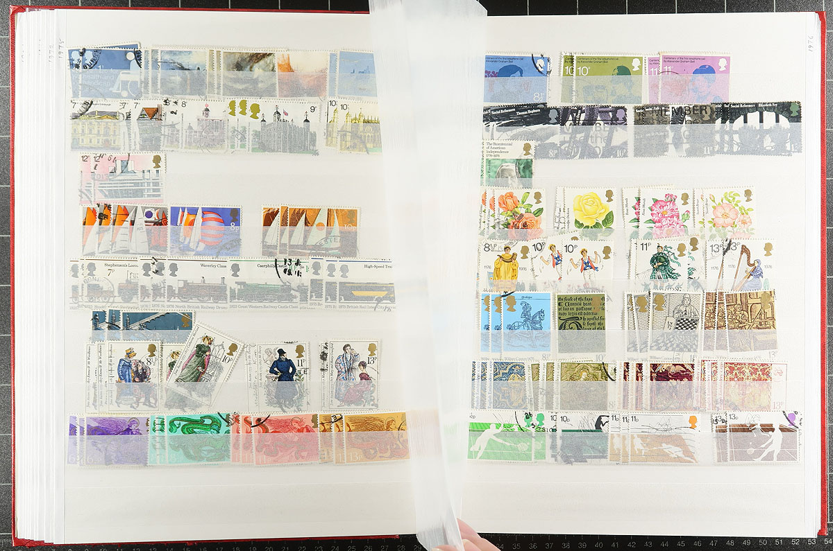 Two stockbooks with a used stock from early Queen Victoria issues to about 2012. The regular issues are in a worn 64-page stockbook, most with 1-3 copies of a type. Includes a couple of later purchases of QV-KEVII issues that the collector didn’t get around to processing. The 16-page stockbook has a basic group of Machins, sorted by denomination. Both stockbooks are red covered Lighthouse brand. Estimate =