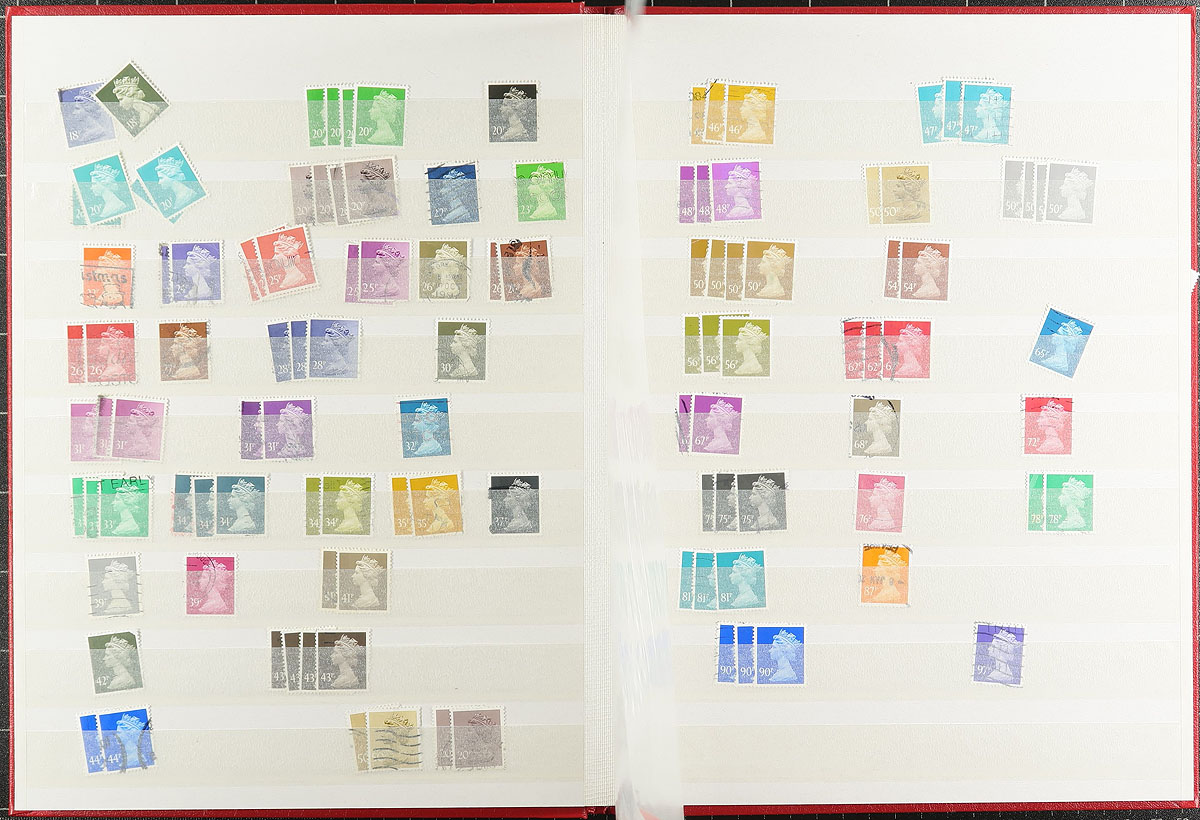 Two stockbooks with a used stock from early Queen Victoria issues to about 2012. The regular issues are in a worn 64-page stockbook, most with 1-3 copies of a type. Includes a couple of later purchases of QV-KEVII issues that the collector didn’t get around to processing. The 16-page stockbook has a basic group of Machins, sorted by denomination. Both stockbooks are red covered Lighthouse brand. Estimate =