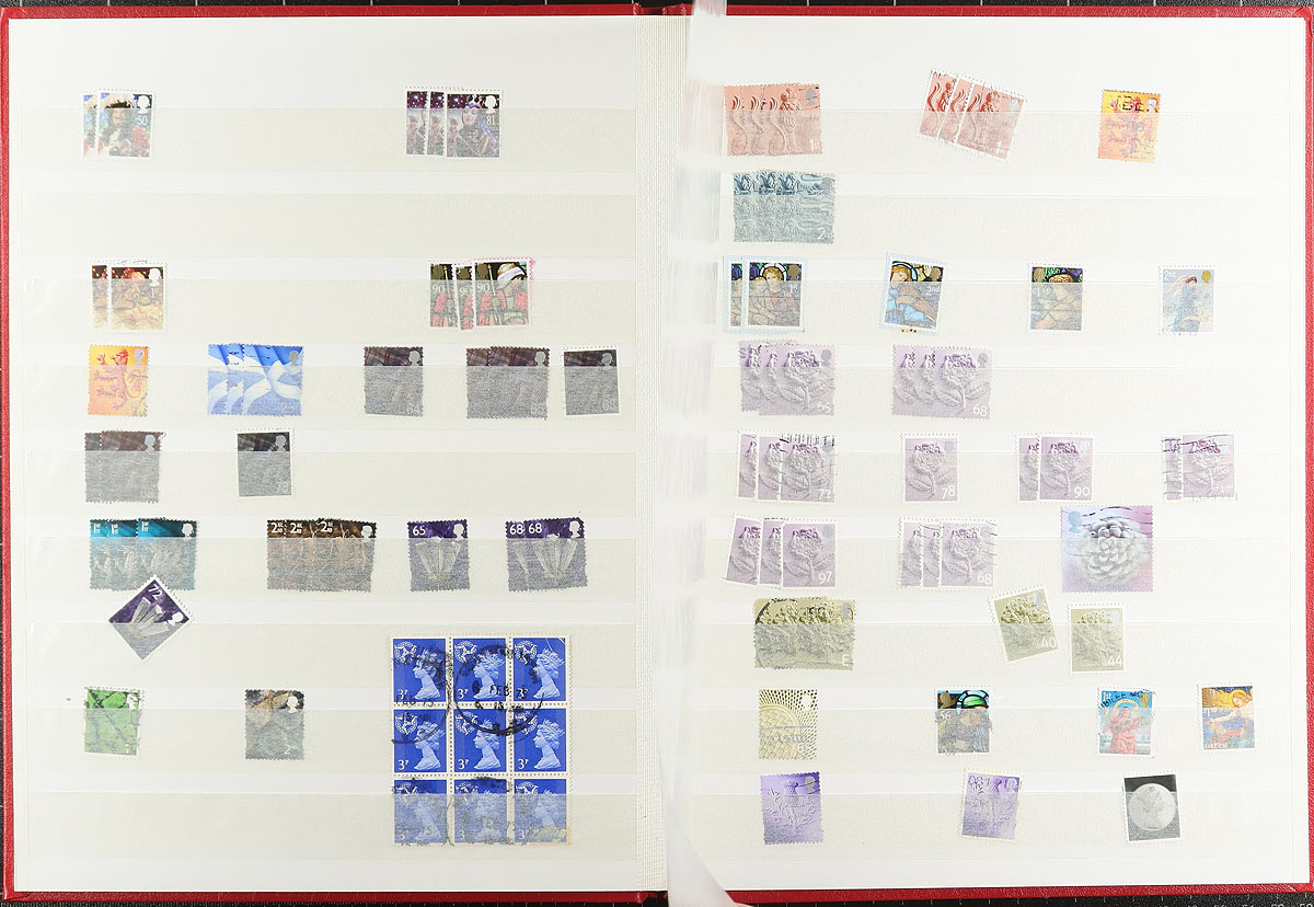 Two stockbooks with a used stock from early Queen Victoria issues to about 2012. The regular issues are in a worn 64-page stockbook, most with 1-3 copies of a type. Includes a couple of later purchases of QV-KEVII issues that the collector didn’t get around to processing. The 16-page stockbook has a basic group of Machins, sorted by denomination. Both stockbooks are red covered Lighthouse brand. Estimate =