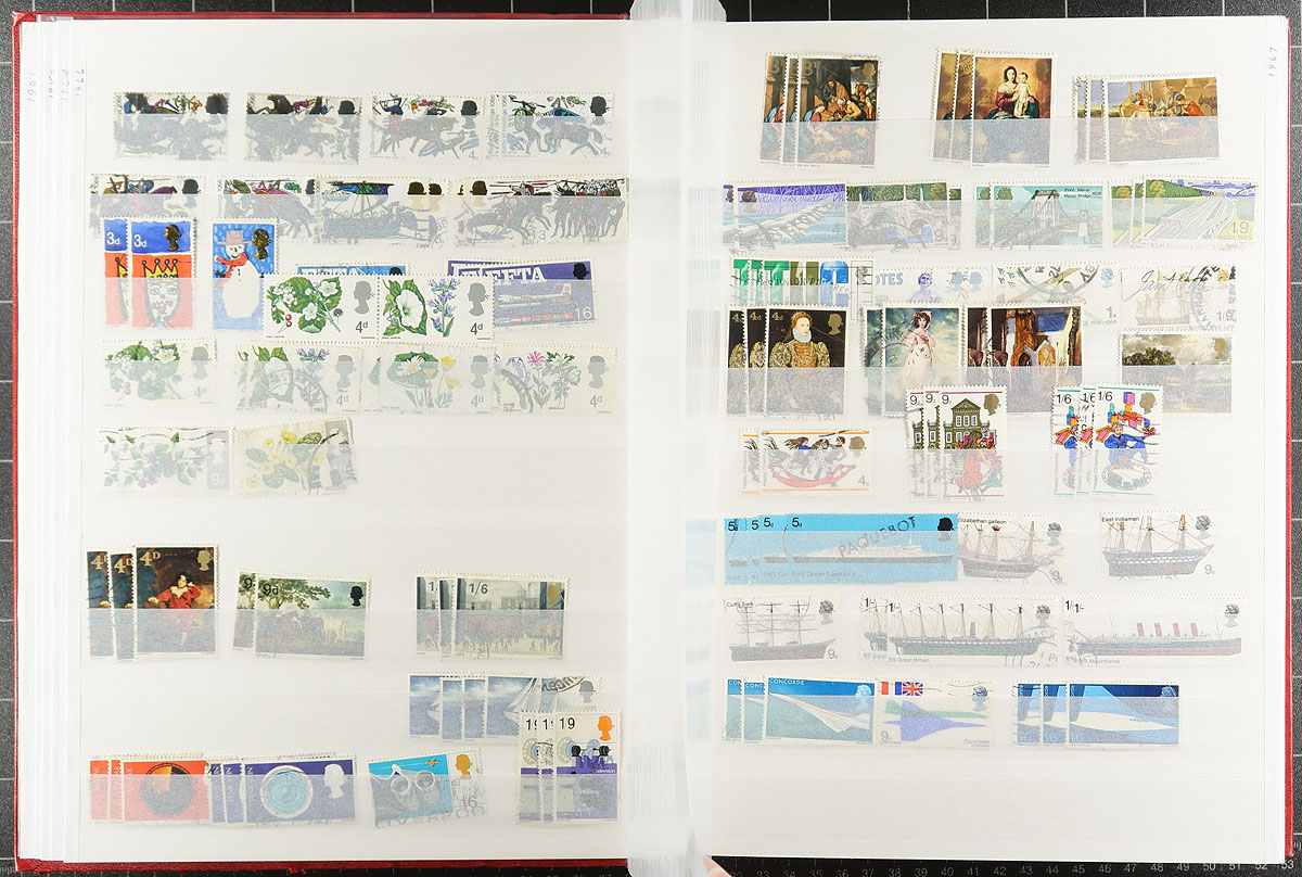 Two stockbooks with a used stock from early Queen Victoria issues to about 2012. The regular issues are in a worn 64-page stockbook, most with 1-3 copies of a type. Includes a couple of later purchases of QV-KEVII issues that the collector didn’t get around to processing. The 16-page stockbook has a basic group of Machins, sorted by denomination. Both stockbooks are red covered Lighthouse brand. Estimate =