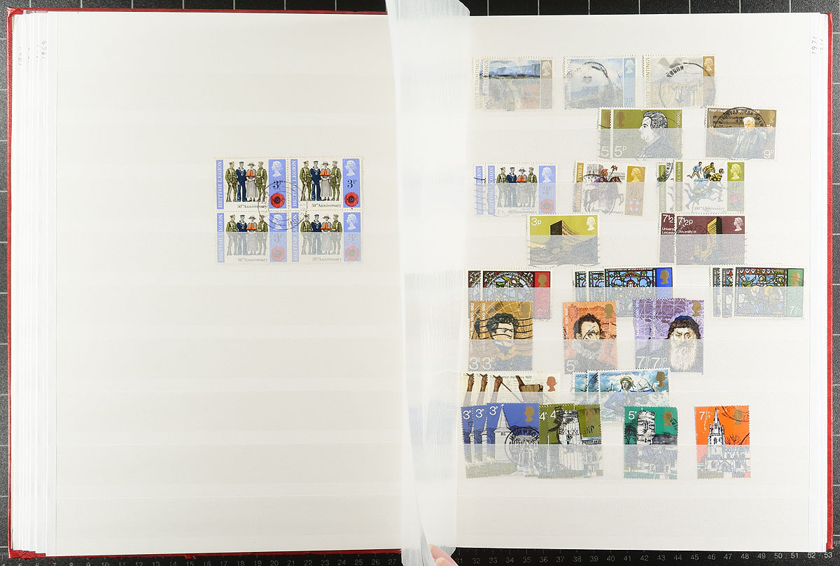 Two stockbooks with a used stock from early Queen Victoria issues to about 2012. The regular issues are in a worn 64-page stockbook, most with 1-3 copies of a type. Includes a couple of later purchases of QV-KEVII issues that the collector didn’t get around to processing. The 16-page stockbook has a basic group of Machins, sorted by denomination. Both stockbooks are red covered Lighthouse brand. Estimate =