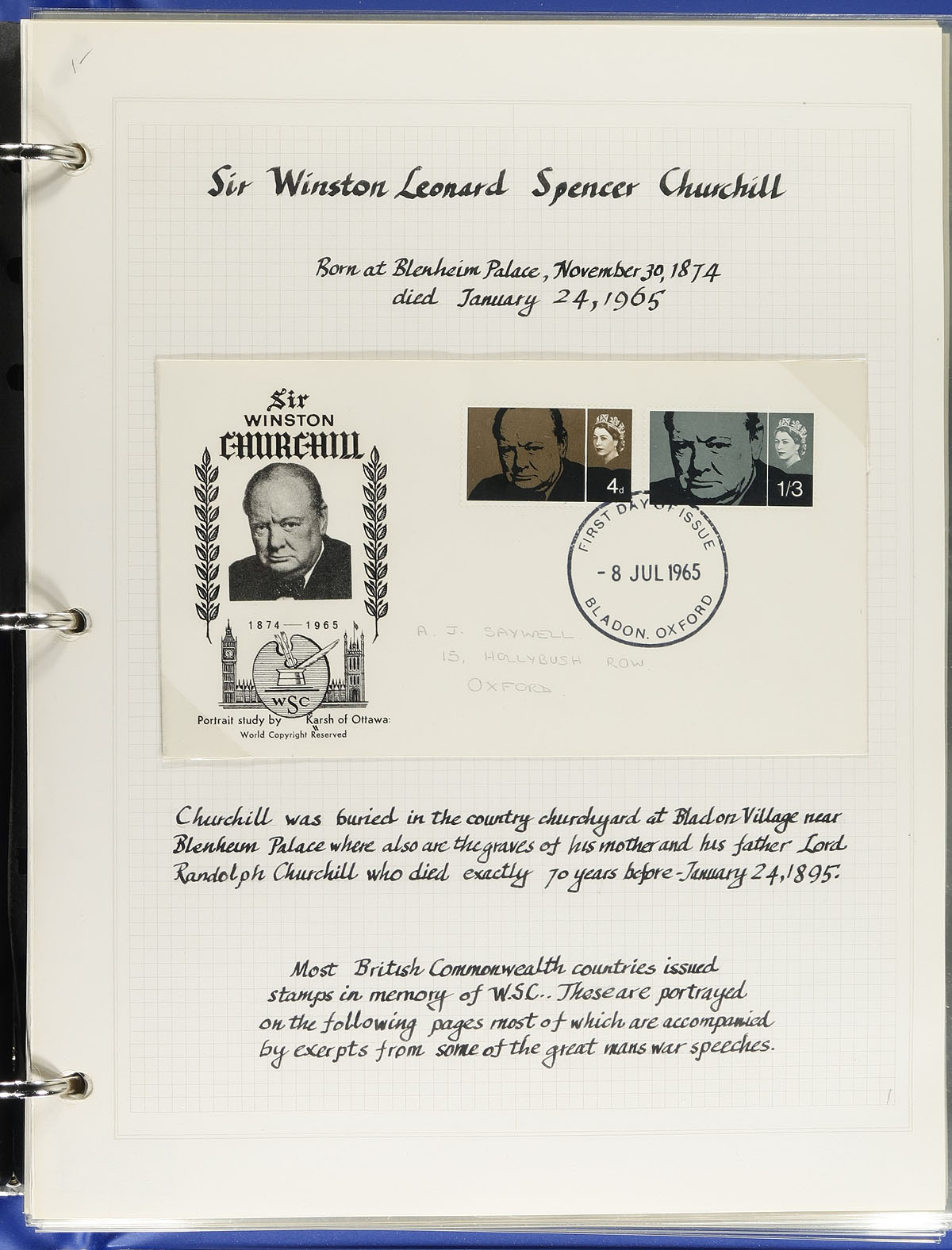 Topical assortment, with a nice collection of "Rowland Hill" anniversary topicals (lots of "Penny Black" and "stamp on stamp" action here). Winston Churchill (plus some WWII) mounted collection in a blue Lighthouse binder with matching slipcase. A small, mid-1970's exhibit of "Pirates"!!! Several pages of assorted "Costumes" (or "traditional clothing"), finishing with a smattering of Elvis and Marilyn. Estimate =