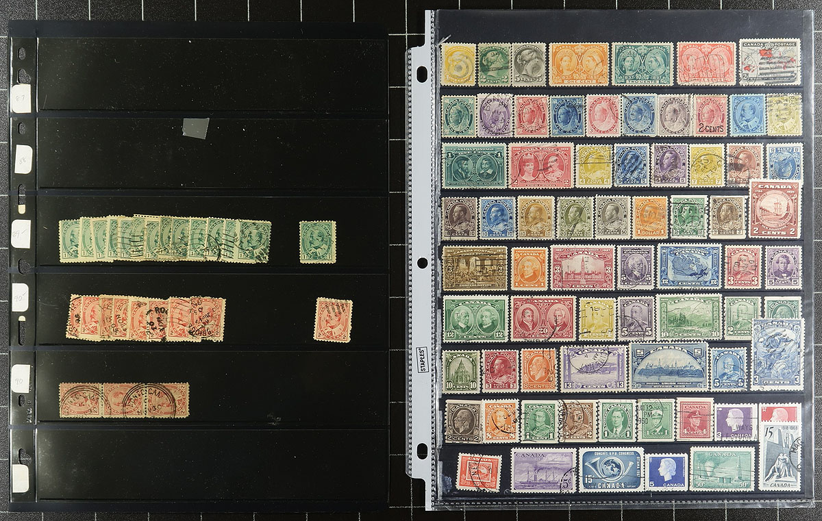 A broad, all used, accumulation from the "Cents" issues up to the end of the 20th century. This estate balance includes quality stops throughout the Queen Victoria era (Jubilees to 20c, lots of Map stamps), with some King Edward VII, Admirals, Bluenose, more coils than should be in a single lot, Wilding plate blocks and assorted singles, right up to some souvenir sheets of the 1990s. Mixed condition, high catalogue value, lots of potential. Estimate =