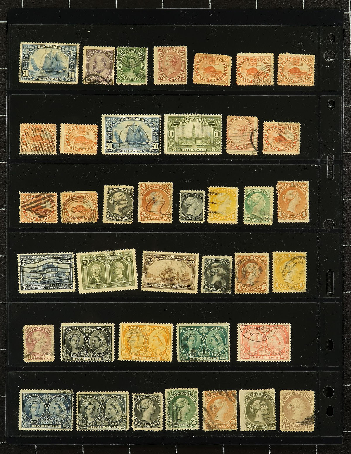 A broad, all used, accumulation from the "Cents" issues up to the end of the 20th century. This estate balance includes quality stops throughout the Queen Victoria era (Jubilees to 20c, lots of Map stamps), with some King Edward VII, Admirals, Bluenose, more coils than should be in a single lot, Wilding plate blocks and assorted singles, right up to some souvenir sheets of the 1990s. Mixed condition, high catalogue value, lots of potential. Estimate =