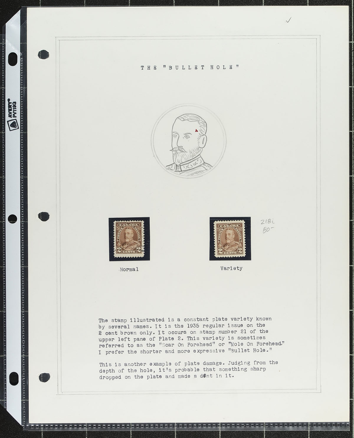 Quartet of classic King George V varieties, beautifully mounted on its own album page. Includes a 2c brown "Arch" block with "Extended Moustache" (hinge remnant), #182iii "Cockeyed King" coil line pair (heavy hinge), #192i "Broken E" in lower right plate #2 block of 8 (no gum) and the 2c brown KGV pictorial with "Mole in Forehead" (no gum). A very attractive group. Estimate =