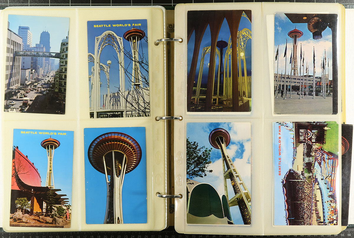 Four-volume "World’s Fair" collection of mostly covers and post cards. Strength is in Montreal Expo ’67 with reciprocating issues from many countries, noting cancels, exhibition and pavilion cachets/handstamps, Cinderellas. Over 60 Expo ’88 Brisbane cacheted covers - the cachets are all the same, but there are all-different cancels honouring various countries’ "Day" in a bespoke binder. The lot concludes with two large binders of post cards. Some go back to the 1930's, but we saw a number from Seattle ’62, significant quantities of different Montreal ’67 (lots of "Benjamin" cards), Osaka ’70, Spokane ’74, Vancouver ’86, plus a bit of non-Expo material. An extensive holding with hundreds of items, not easily replicated. Estimate =
