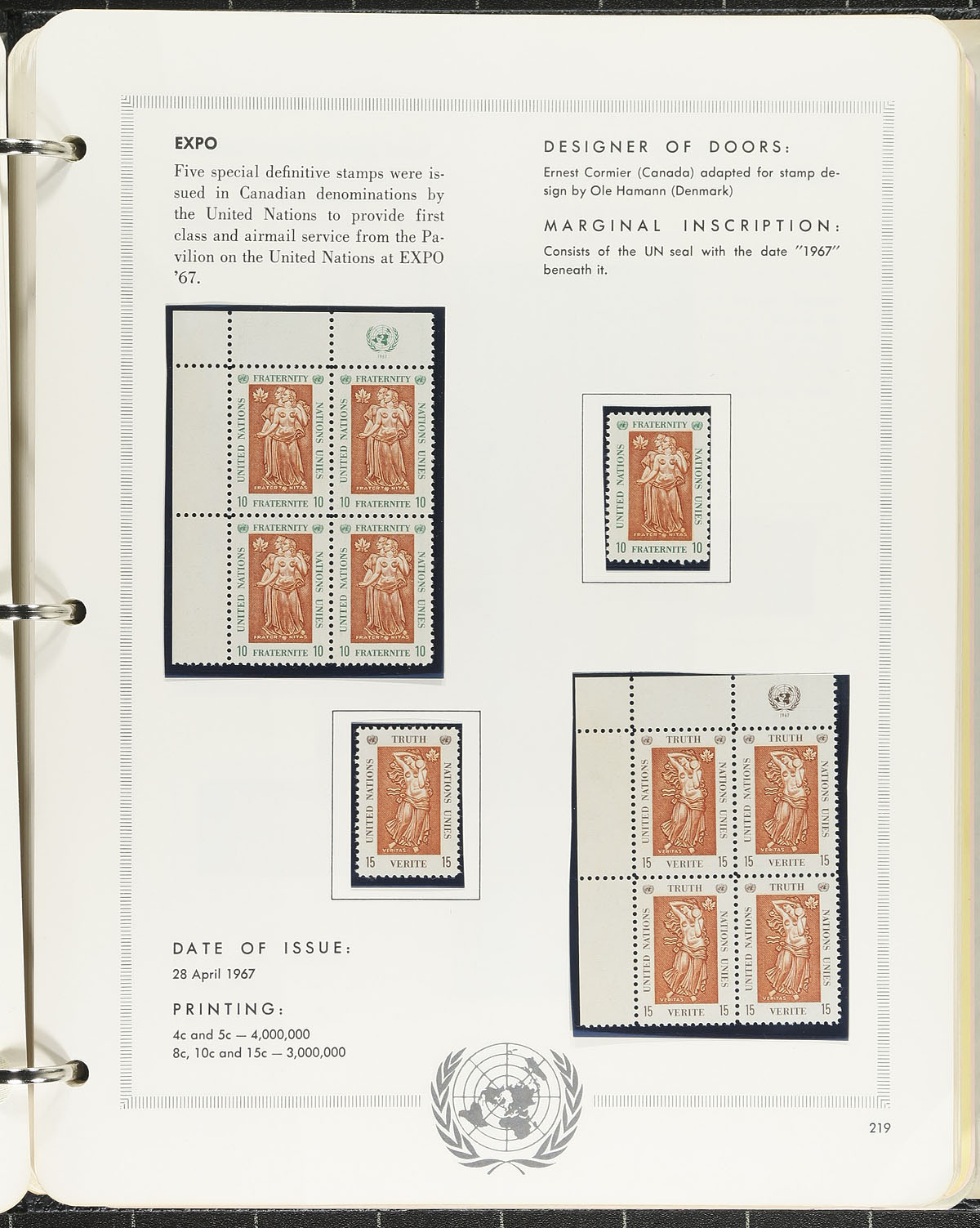 A bankers box filled with a diverse batch of "goodies" from the 1950's-2012. With a mint and used stock, a couple of albums with mint singles and blocks, commemorative panels and folders, two volumes and a FDC album filled with 1960's First Day Covers and a batch from Geneva (up to 1982). There is a page of 1980's Geneva mint blocks, some 21st century mini-panes and souvenir sheets, with lots of face value. The binders were not treated well, but the material has survived and thrives! Enormous initial cost. Estimate =