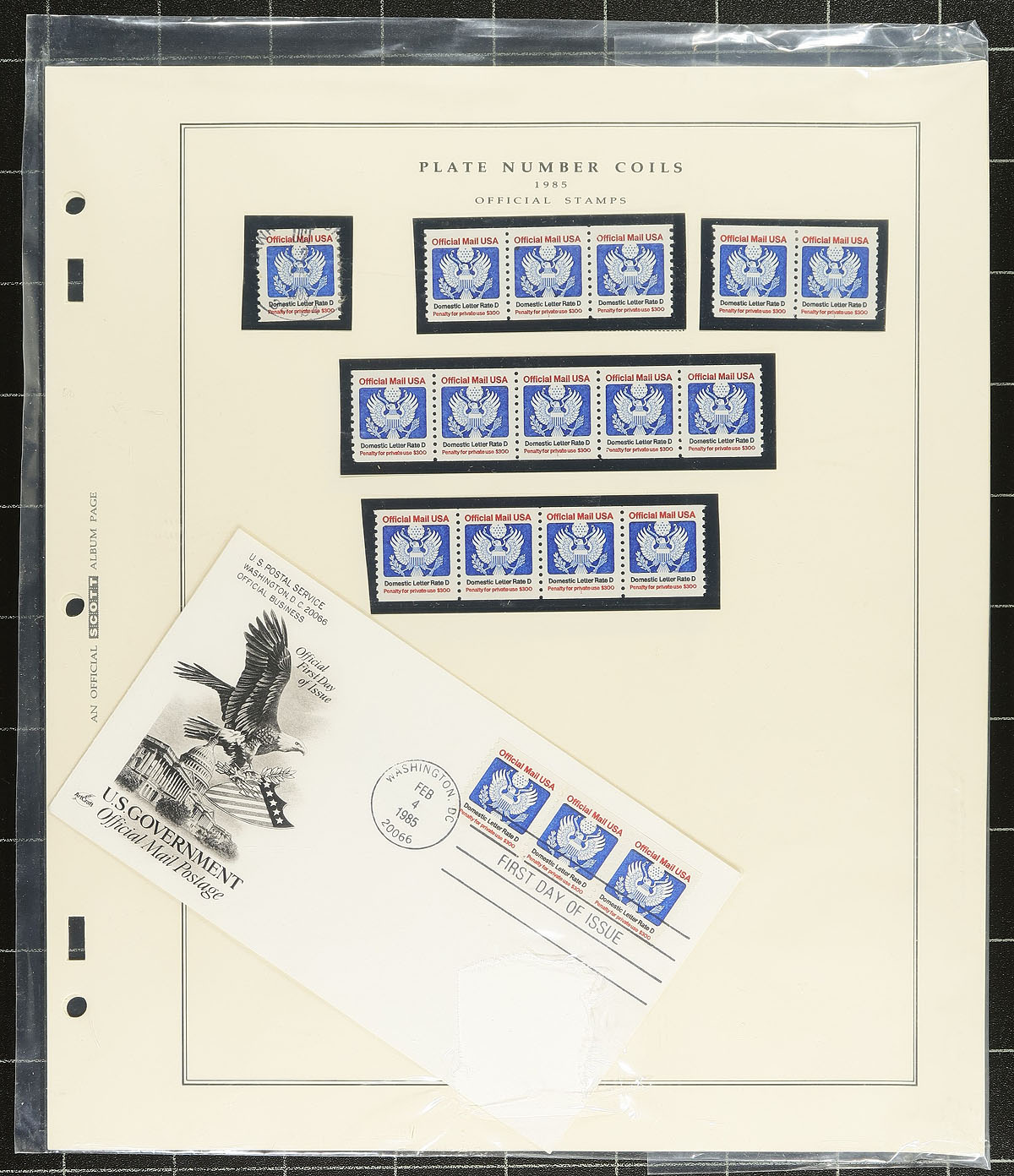 A U-Haul box with an estate balance, with a mix of mint and used, old and new. The mint includes a number of 1970's-1990's year folders and albums, 5 "graded" stamps (relatively common but given "95" ratings), a big group of coils (many with plate numbers - strength in the Transportation and Officials), plus a never hinged block of 10 of #J63 (a bit off-centre and two with natural paper crease - cat $350.00). The used includes a battered "Liberty" album, a stockbook, and several stockpages and album sections (mostly common, but some better may lurk), with a touch from the back of the book. Estimate =