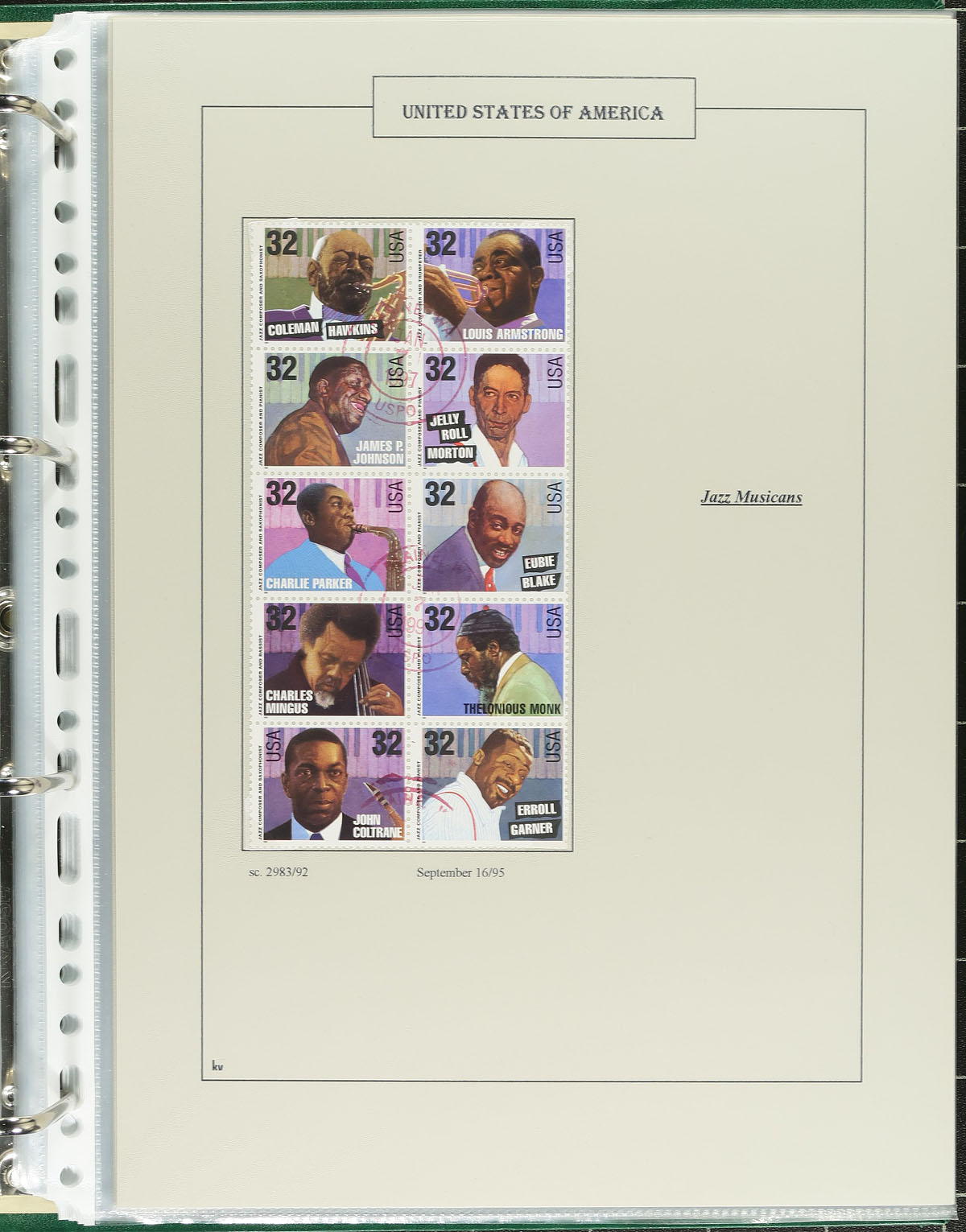 A U-Haul box with an estate balance, with a mix of mint and used, old and new. The mint includes a number of 1970's-1990's year folders and albums, 5 "graded" stamps (relatively common but given "95" ratings), a big group of coils (many with plate numbers - strength in the Transportation and Officials), plus a never hinged block of 10 of #J63 (a bit off-centre and two with natural paper crease - cat $350.00). The used includes a battered "Liberty" album, a stockbook, and several stockpages and album sections (mostly common, but some better may lurk), with a touch from the back of the book. Estimate =
