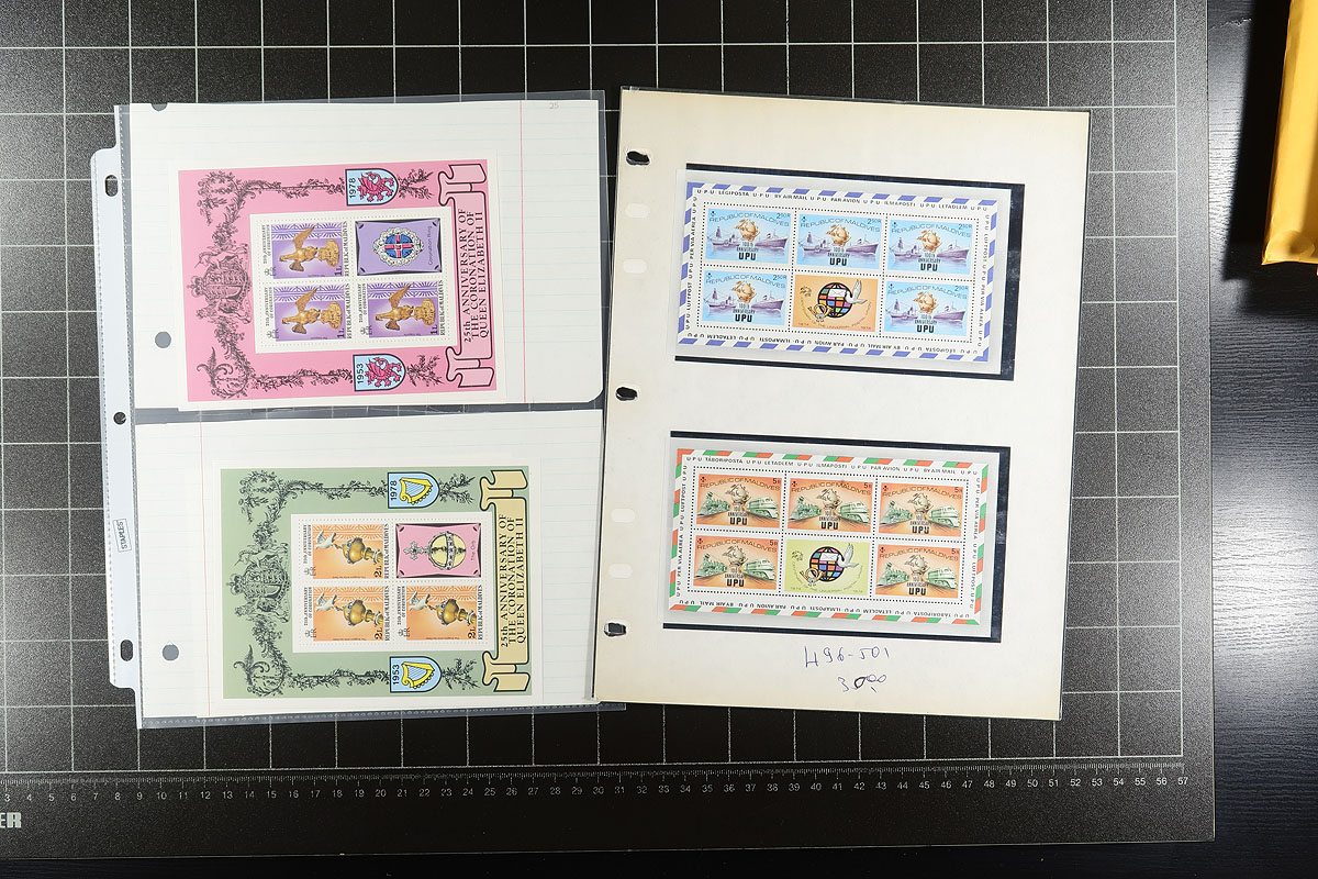 Mint accumulation from several colonies, most on stockpages and most are never hinged. Maldive Islands, two groups from 1974-2003 (cat $250.00), Aitutaki 1985 official wholesale group (cat $200.00), Guyana (21st century selection (catalogue $180.00), Belize 1974-1980's (48 diff cat $112.00), Tuvalu 1986 Royal Wedding imperforates, with some Disney topicals, and earlier selections from St. Helena, Seychelles and Tonga. Great condition. Estimate =