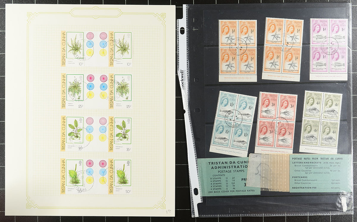 Used selection from several colonies, including a few where used is more difficult to find than mint. Strength is in British South Atlantic with Ascension (#13 x2, 1948 Silver Wedding high value), Falklands (#34, #100), St. Helena, Tristan da Cunha. From the same area is a page of St. Lucia (a bit of mint mixed in here) and then two pages with a century of Hong Kong issues (catalogues $225.00). A very nice selection, perfect to fill in spaces or to break up for sale. Estimate =