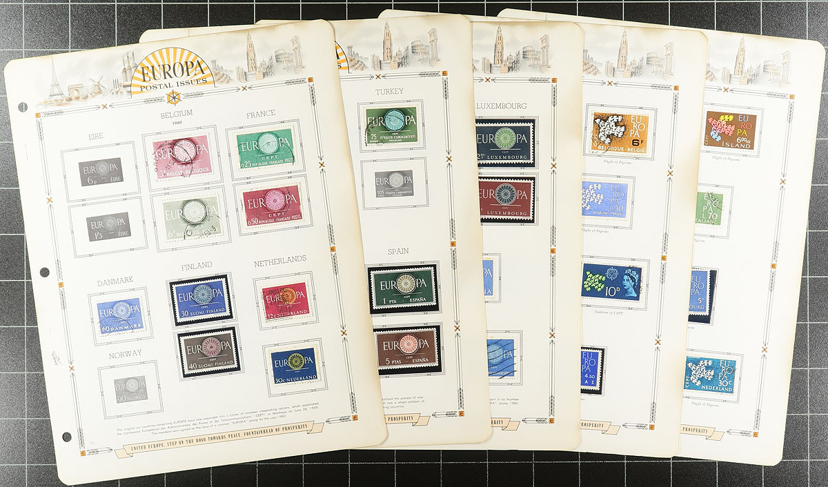 Mint and used "Europa" collection 1958-1983 on "White Ace" album pages (and a couple souvenir sheets). Approximately 700 stamps, 8 covers and 2 souvenir sheets. About 70% complete, including better Cyprus, Luxembourg, French Andorra, Ireland, etc. Includes some non-participating nation issues circa 1960. Owner’s Scott about US$1000.00 =