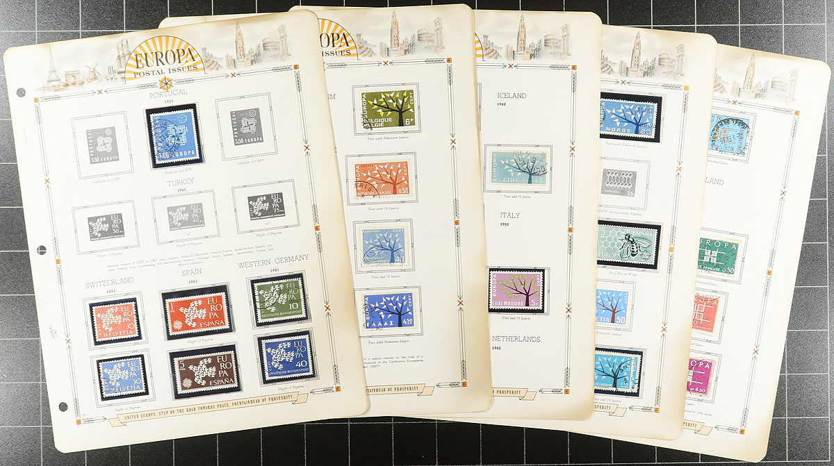 Mint and used "Europa" collection 1958-1983 on "White Ace" album pages (and a couple souvenir sheets). Approximately 700 stamps, 8 covers and 2 souvenir sheets. About 70% complete, including better Cyprus, Luxembourg, French Andorra, Ireland, etc. Includes some non-participating nation issues circa 1960. Owner’s Scott about US$1000.00 =