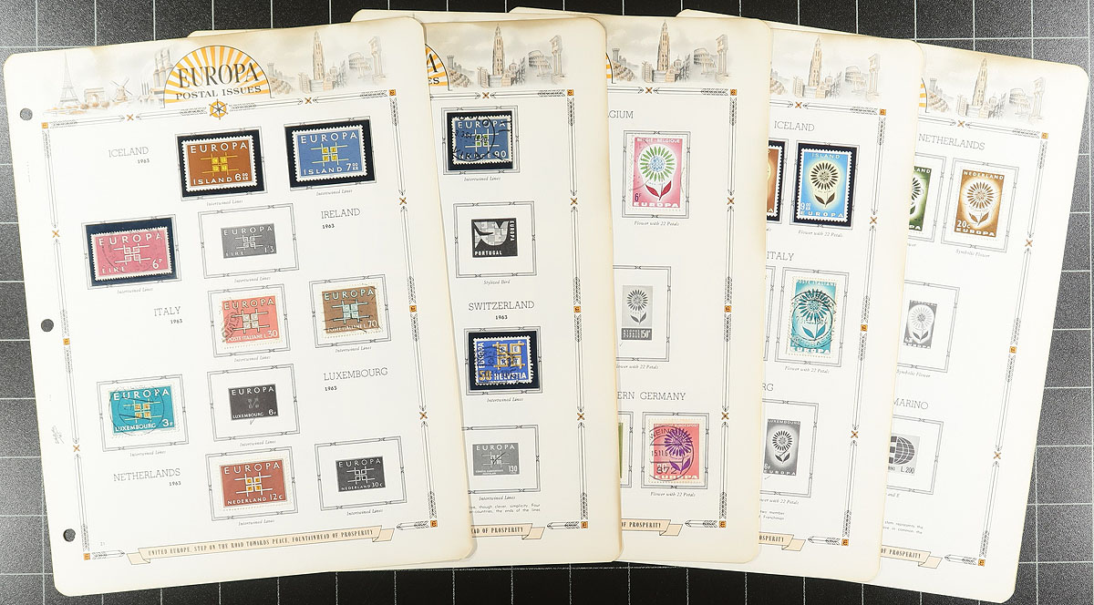 Mint and used "Europa" collection 1958-1983 on "White Ace" album pages (and a couple souvenir sheets). Approximately 700 stamps, 8 covers and 2 souvenir sheets. About 70% complete, including better Cyprus, Luxembourg, French Andorra, Ireland, etc. Includes some non-participating nation issues circa 1960. Owner’s Scott about US$1000.00 =