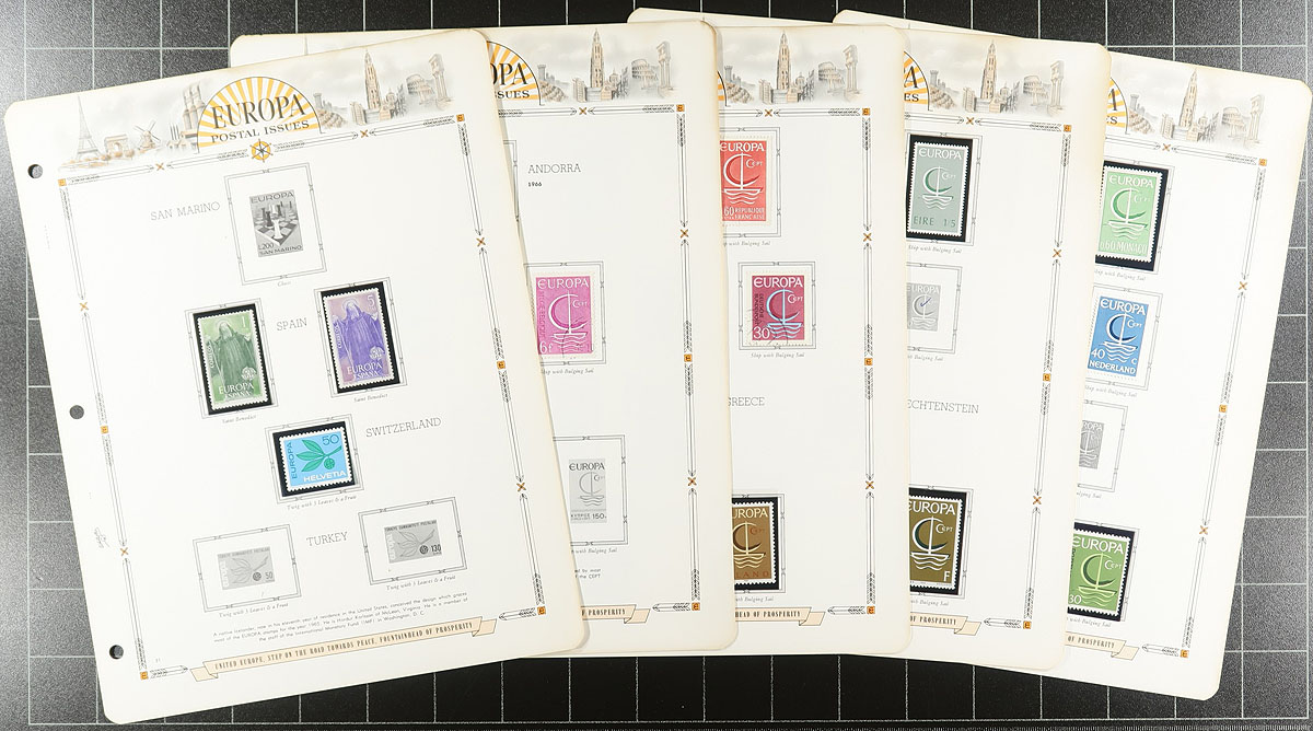 Mint and used "Europa" collection 1958-1983 on "White Ace" album pages (and a couple souvenir sheets). Approximately 700 stamps, 8 covers and 2 souvenir sheets. About 70% complete, including better Cyprus, Luxembourg, French Andorra, Ireland, etc. Includes some non-participating nation issues circa 1960. Owner’s Scott about US$1000.00 =