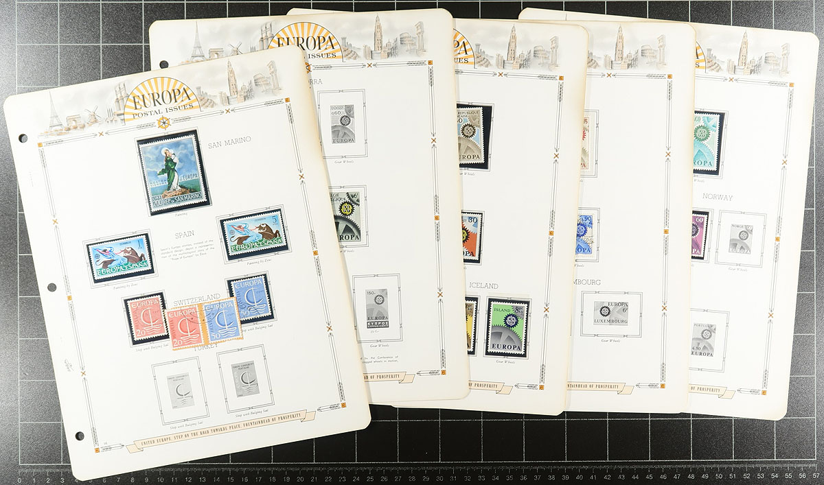 Mint and used "Europa" collection 1958-1983 on "White Ace" album pages (and a couple souvenir sheets). Approximately 700 stamps, 8 covers and 2 souvenir sheets. About 70% complete, including better Cyprus, Luxembourg, French Andorra, Ireland, etc. Includes some non-participating nation issues circa 1960. Owner’s Scott about US$1000.00 =