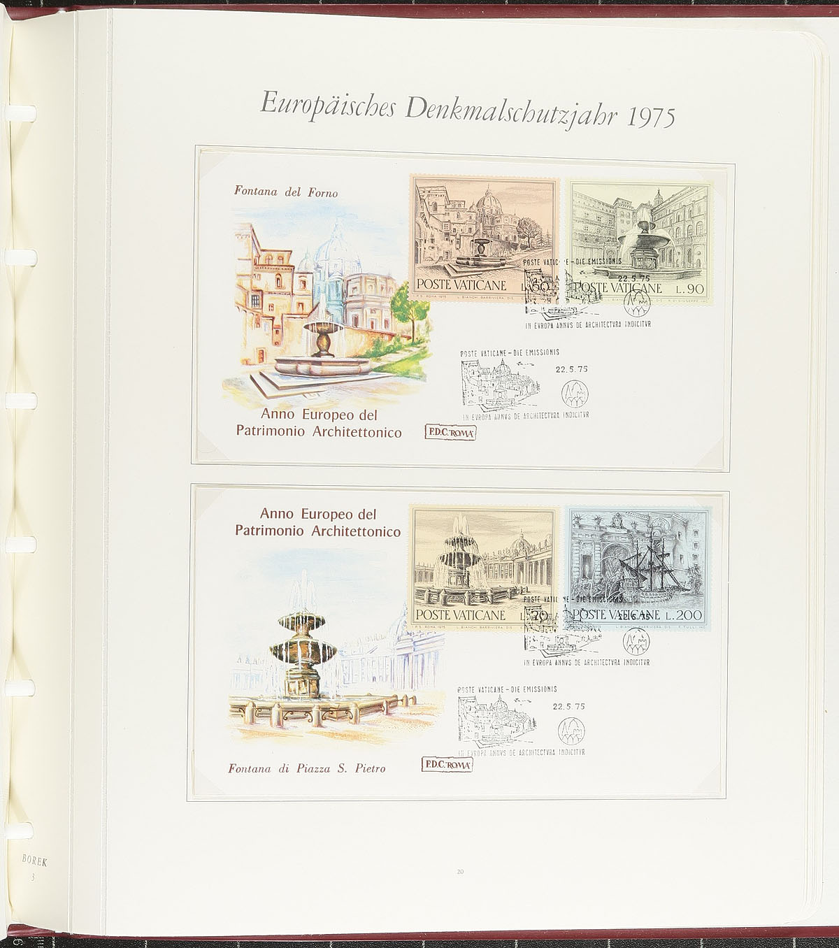 Collections, topicals, random pages. A perfect bankers box for the collector with diverse interests, either for acquiring, learning or selling. The seemingly random worldwide material includes a few one-country groups of sheets (Venezuela, Yugoslavia, Netherlands, Ireland, etc.). And from other countries there is a group of souvenir sheets and complete booklets. The topical section is eclectic, including 1975 "European Architectural Heritage" (Borek album, with Romania "Romulus and Remus souvenir sheet #2569a MNH and FDC - cat $140.00). "Art" on stamps from 1971-73 includes Singapore #153-156, with some Birds, Pharmacology and a "WWF" topical group of animals from c.1990. Enormous catalogue value and some unusual material here. Estimate =