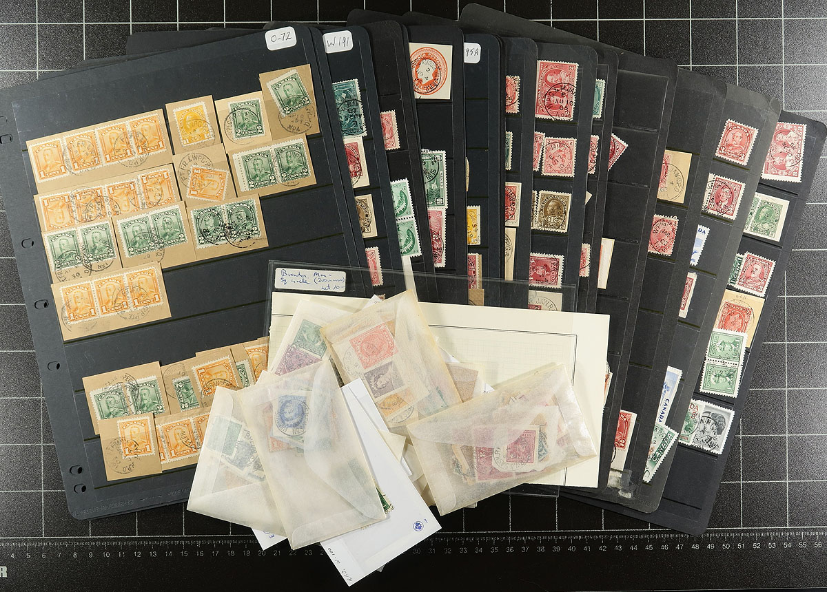 RPO Railway Post Offices - Western Canada. A high-quality group of over 500 cancels on stamp or stamp / piece from QV to QEII era, arranged on pages (largely sorted by run) or in packets / loose. Ex. Bob Lane collection. Estimate =