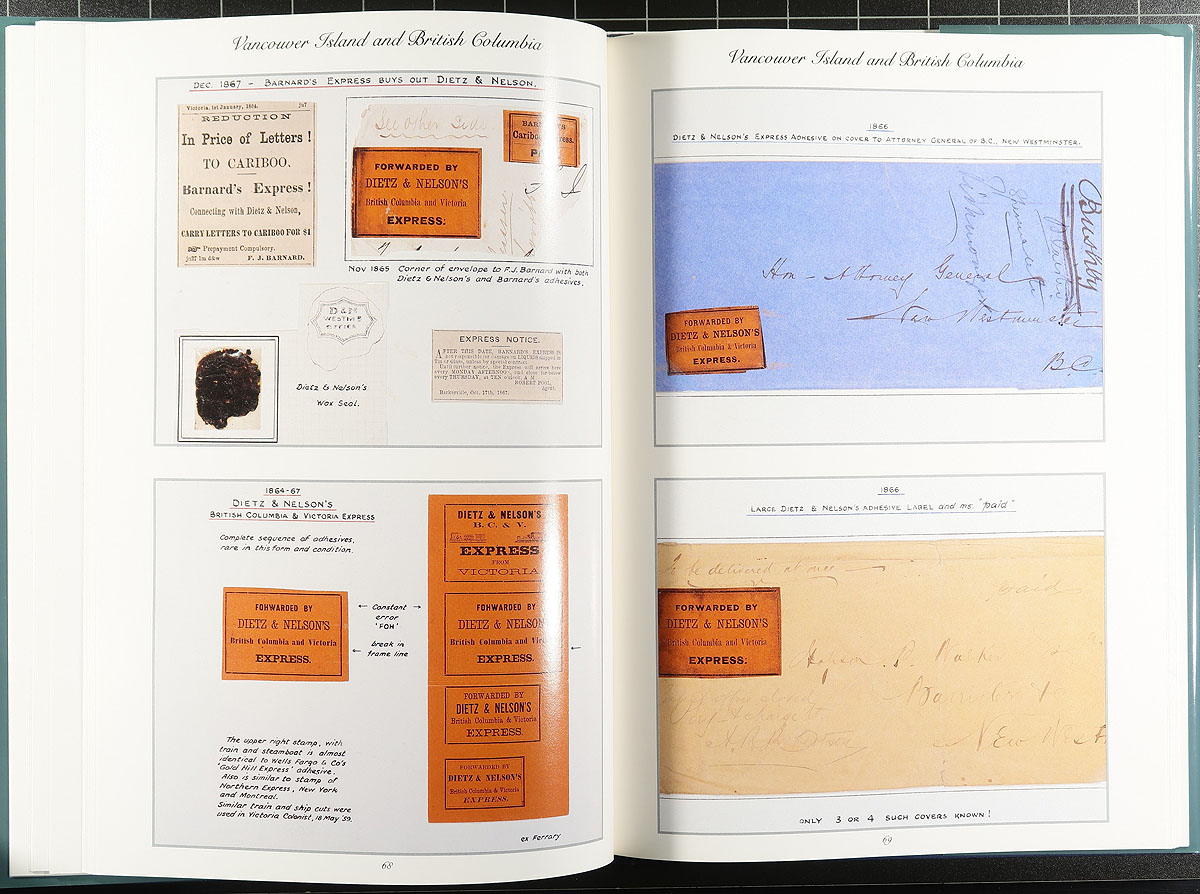 British Columbia Literature. Gerald Wellburn's exceptional "The Stamps and Postal History of Vancouver Island & British Columbia". Large format, high definition full colour coffee table book depicting one of the most magnificent BC and Vancouver Island collections ever formed. A must-have for the BC collector! In VF condition with intact dust jacket. Long out of print. Original retail =