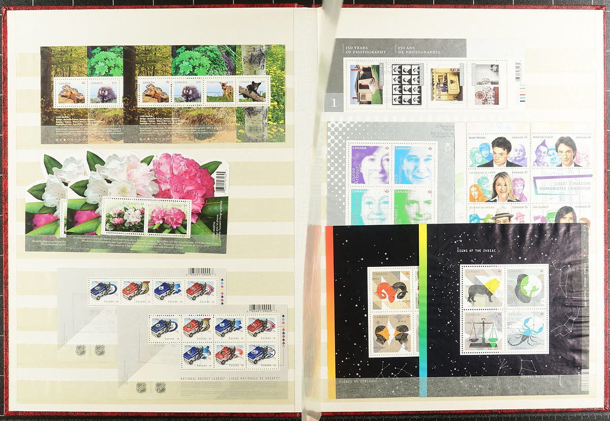 Lovely group of used souvenir sheets, 1970's-2010's, containing roughly 125 souvenir sheets or panes, in a stockbook and in a few manila stock pages. The lot generally ranges from Unitrade #756a/2805, noting material ranging from $3 to $5 each. Duplication does exist, generally 3 to 5 each for some issues. We note POCON postmarks generally from Vancouver, Ontario and Quebec. A nice lot for the used collector. Estimate =