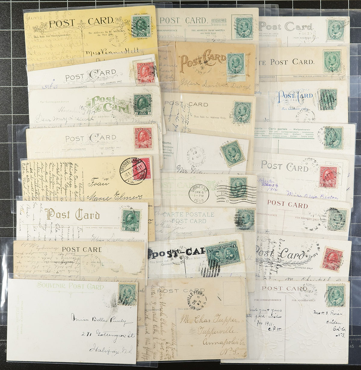 NS Nova Scotia Split Ring Holding. A holding of 75x Edward / Admiral postcards, all with Nova Scotia split ring cancels. Most are sleeved, but all totally unchecked, offered as part of an estate holding. These were likely queued up to be researched, but it looks like this never happened. The perfect opportunity for the postmark hound. Estimate =