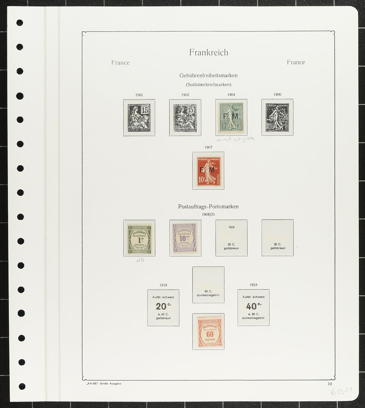 A collection of 55 mostly mint hinged stamps (a few MNH or mint no gum). The odd small fault. On oversize KA-BE hingeless album pages, between 1876-1919 time period. Owner's 2017 Scott US$1,782.65 =
