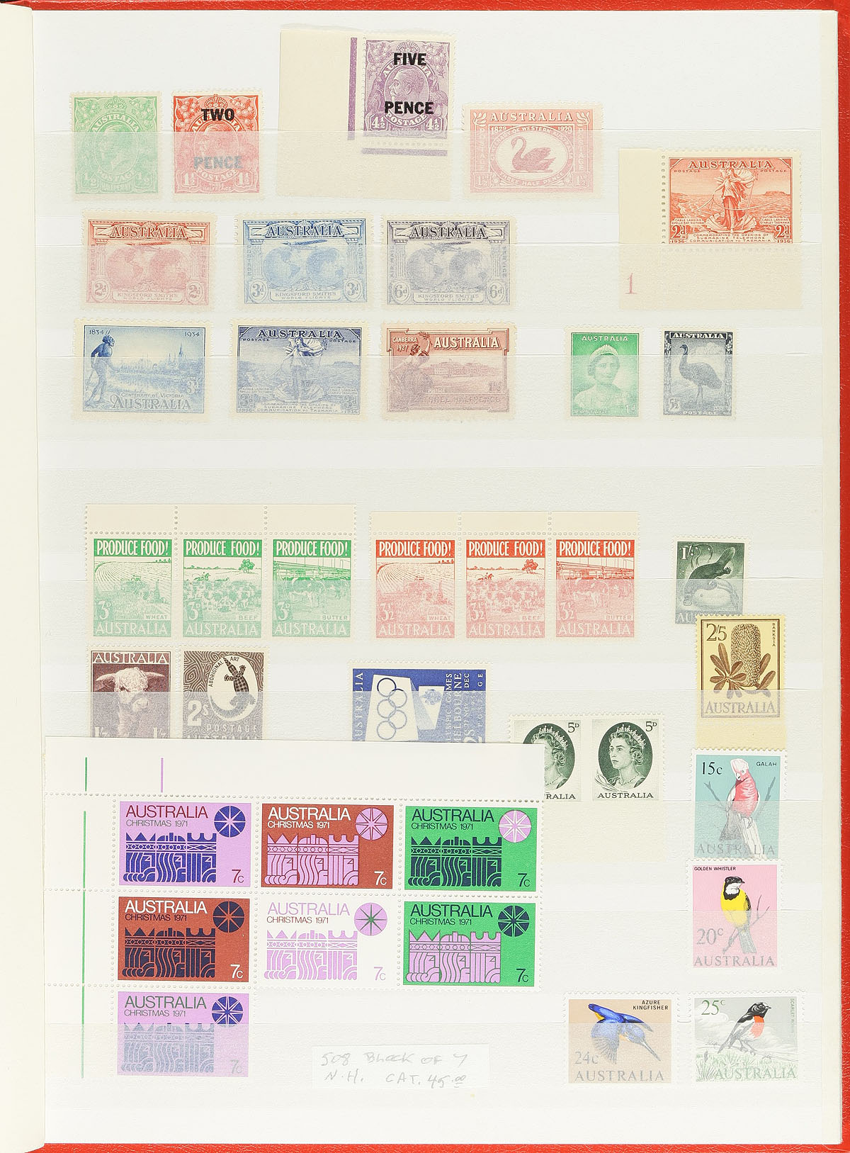 A Lighthouse stockbook loaded with mint Never Hinged stamps, including 160 stamps (pairs, blocks, strips counted as one stamp only-and there's lots of them), ten souvenir sheets & mini-sheets, and four booklets. Range from KGV Heads to 2010 issues (majority are QEII), includes a few AAT. All Never Hinged! Owner's 2022 Scott US$524.00 =