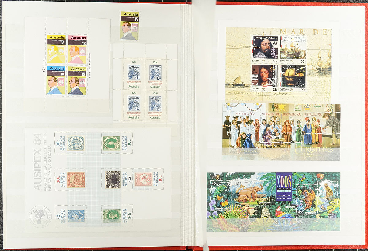 A Lighthouse stockbook loaded with mint Never Hinged stamps, including 160 stamps (pairs, blocks, strips counted as one stamp only-and there's lots of them), ten souvenir sheets & mini-sheets, and four booklets. Range from KGV Heads to 2010 issues (majority are QEII), includes a few AAT. All Never Hinged! Owner's 2022 Scott US$524.00 =