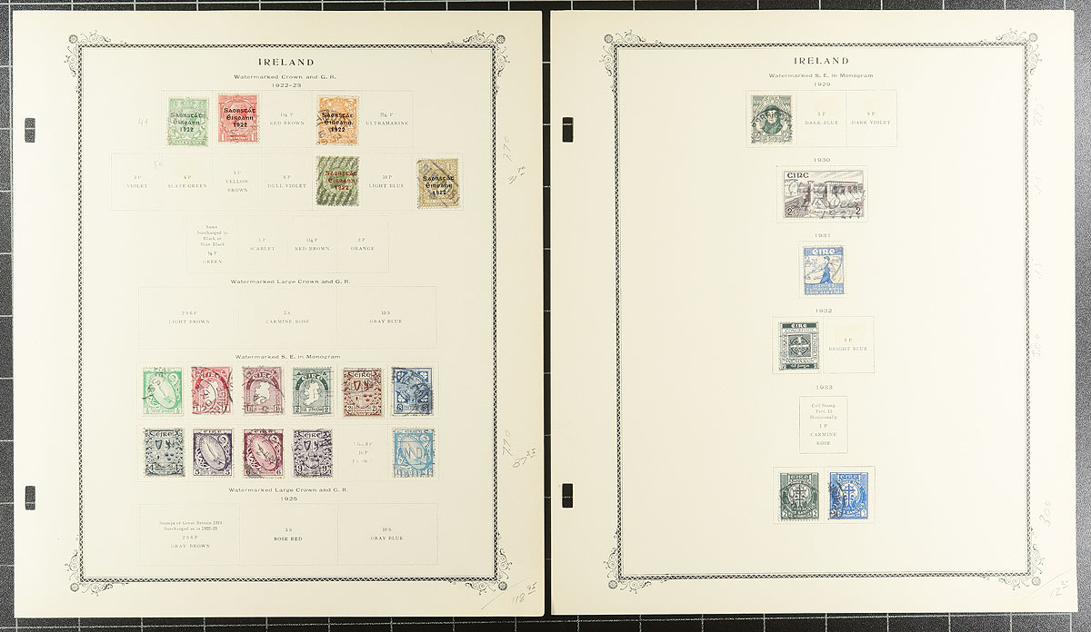 Mostly used collection of 216 stamps, 1922 to 1969 period issues, the majority still mounted on the original Scott Specialty album pages. While there are not that many complete sets and not many overprinted issues there are a useful number of higher value singles noted. Excellent basis for expansion. Owner's 2021 Scott US$799.00 =